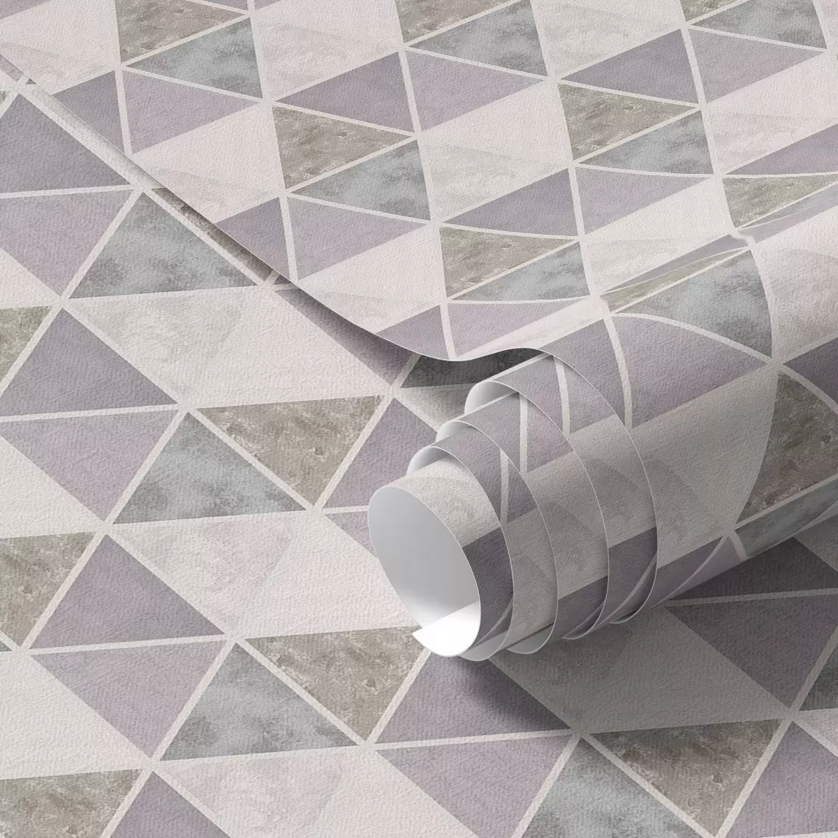 Tapete Dreiecke mit strukturierten Einsätzen, eine Mischung aus Flieder und Grau Nr. a00917