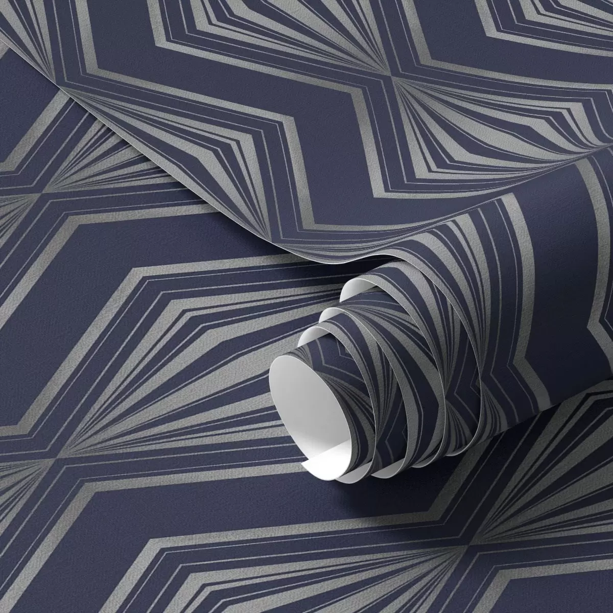 Tapete Geometrische, strahlenförmige Diamanten auf dunkelblauem Hintergrund Nr. a00925