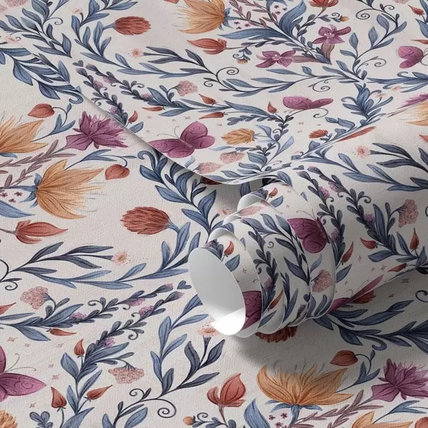 Tapete Blumendamaszener mit Schmetterlingen in Marineblau und Terrakotta auf Weiß Nr. a00926v1