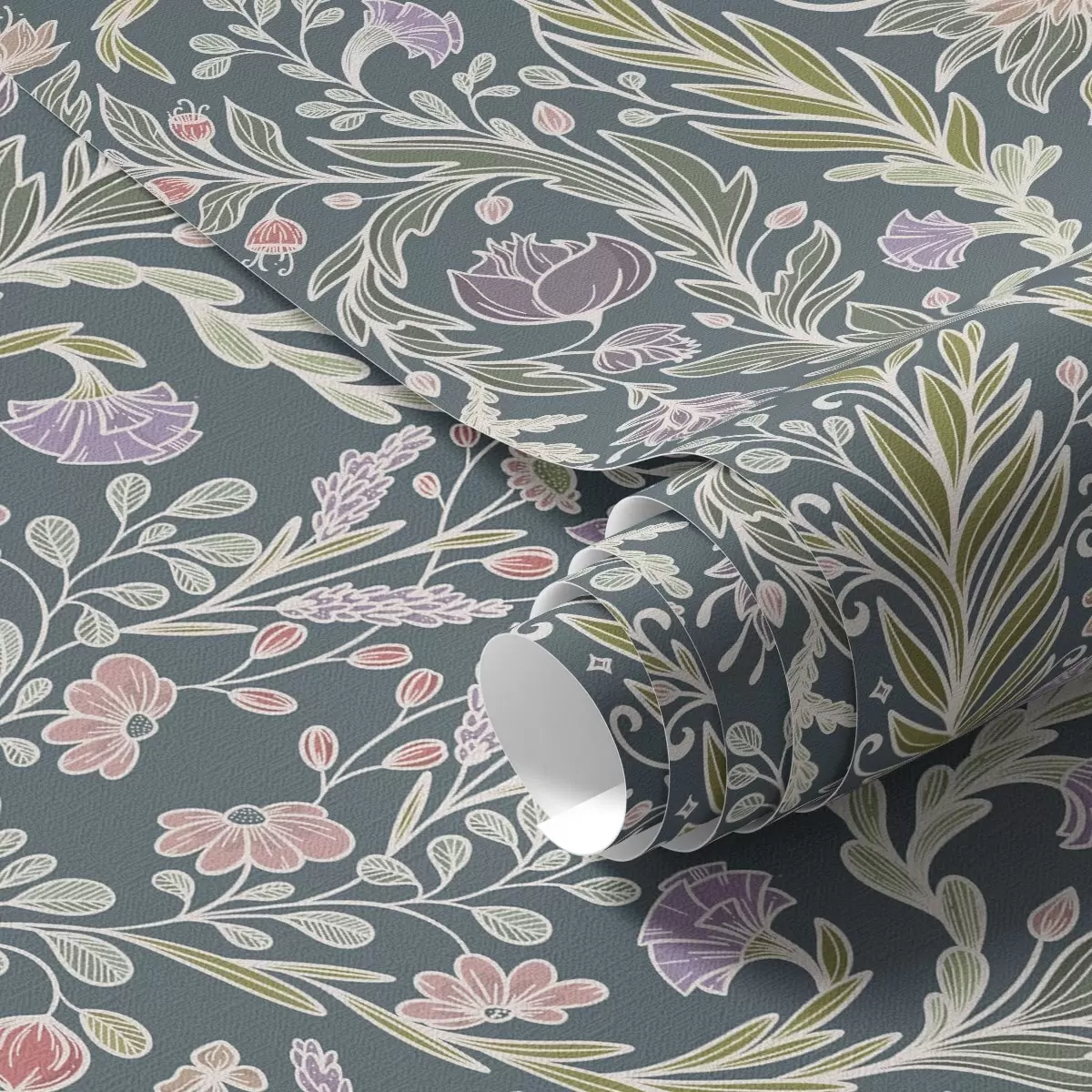 Tapete Das gleiche Ornament auf einem kühlen graublauen Hintergrund Nr. a00928v1
