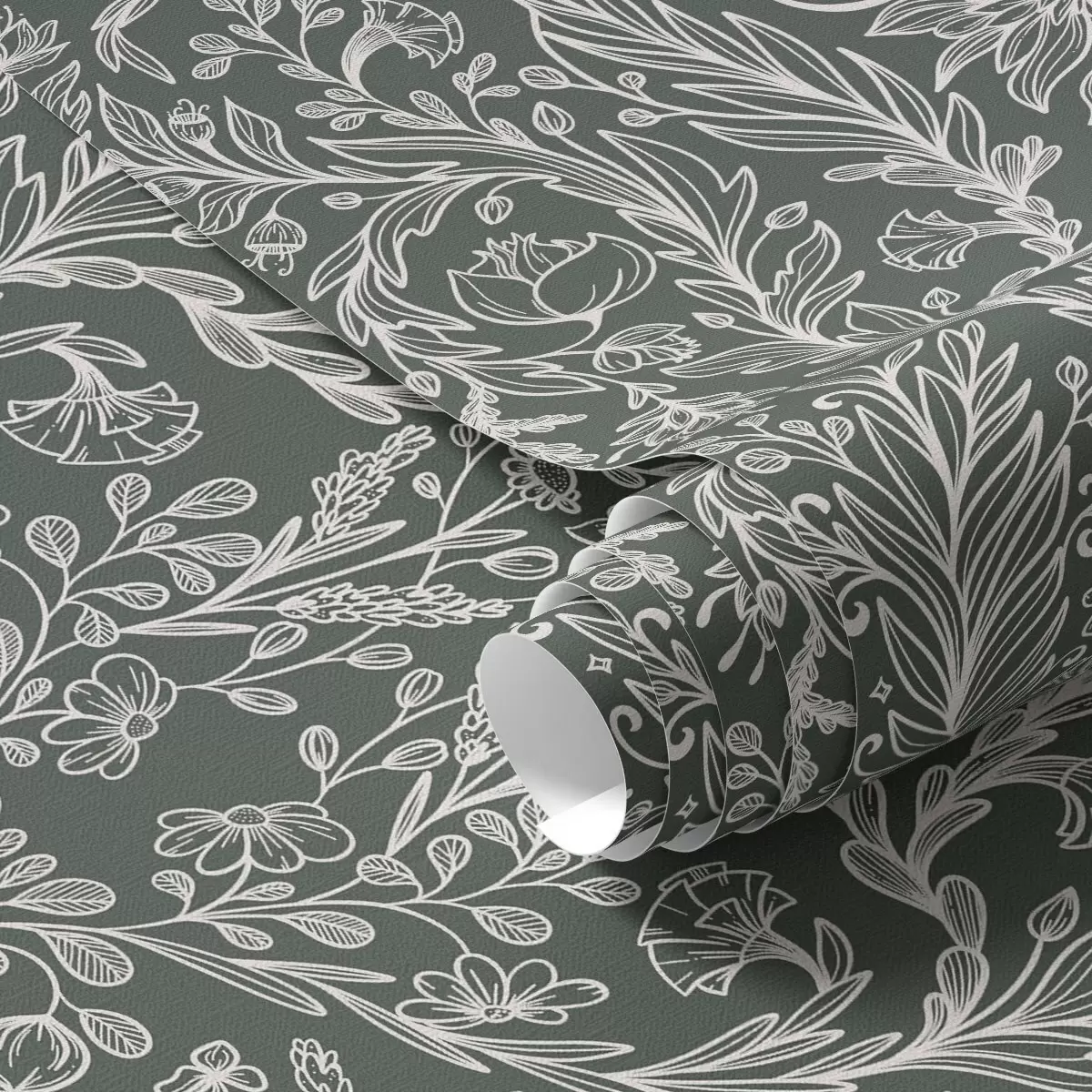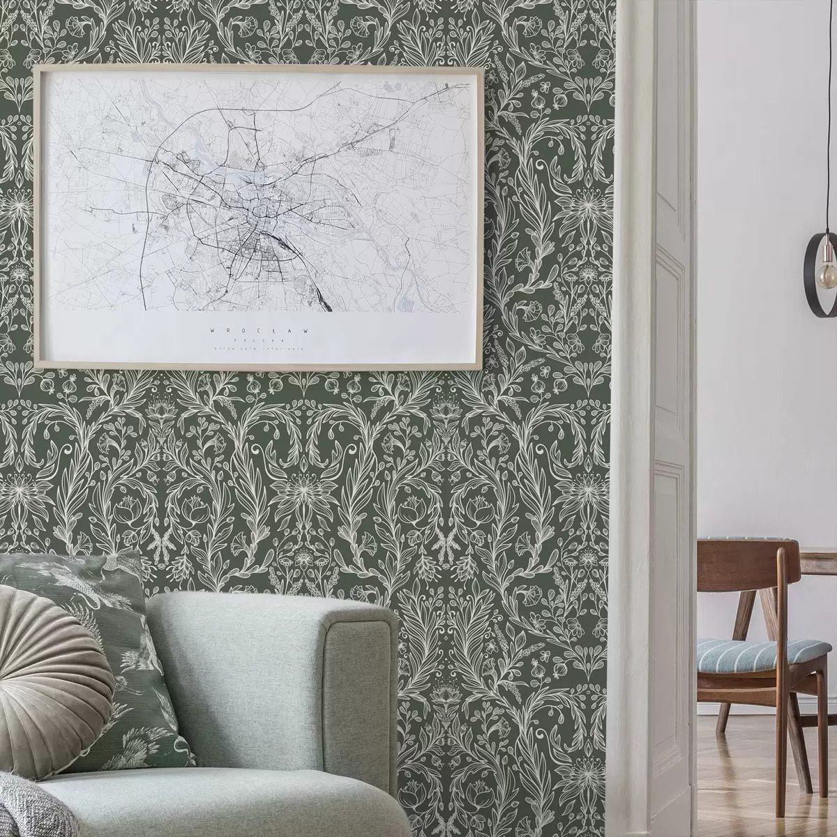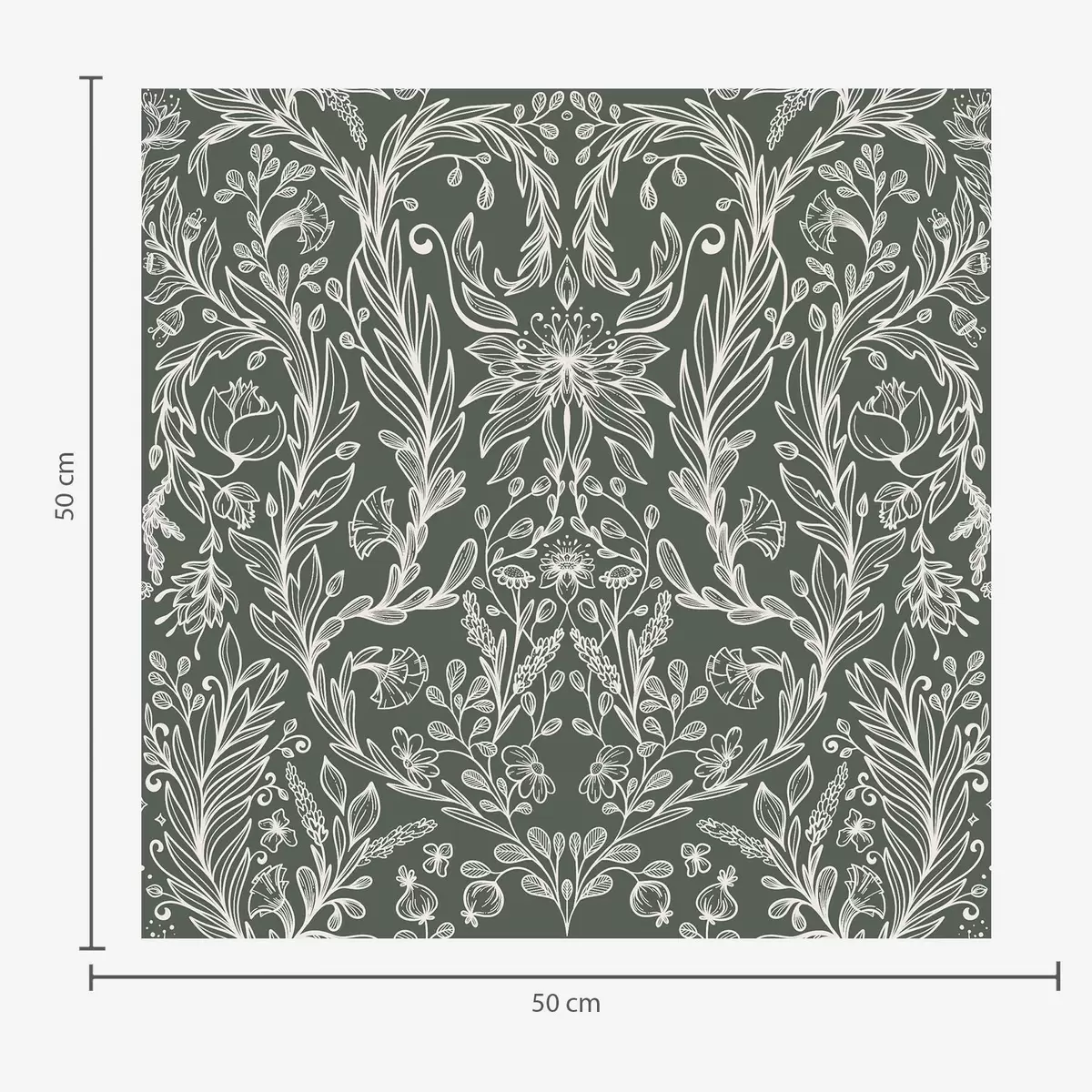 Tapete Lineares Blumenmuster auf dunkelgrünem Hintergrund Nr. a00929