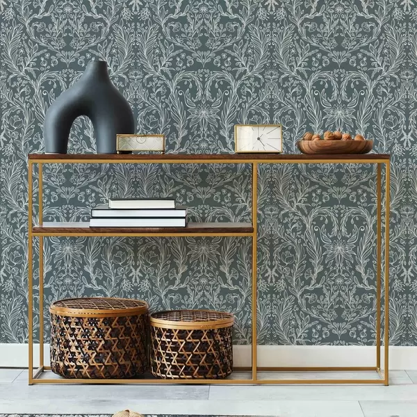 Tapete Lineares Blumenornament auf blaugrauem Hintergrund Nr. a00929v1