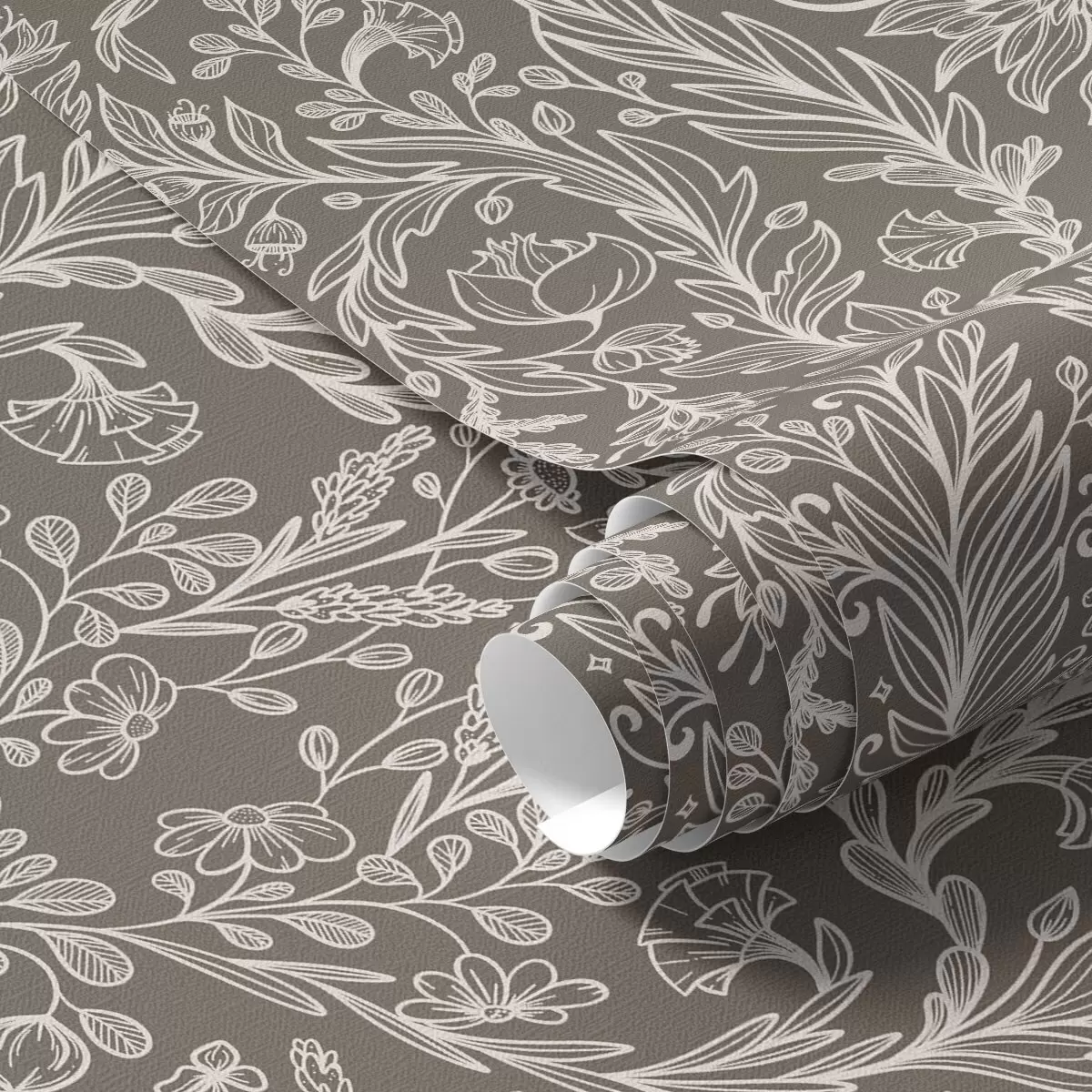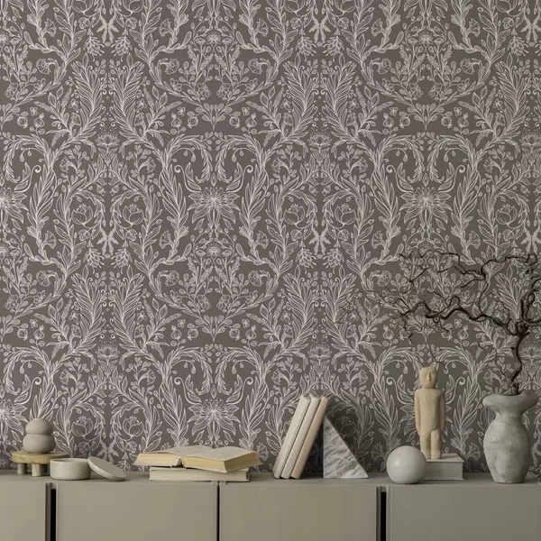 Tapete Monochromes botanisches Muster auf warmem Braun Nr. a00929v2