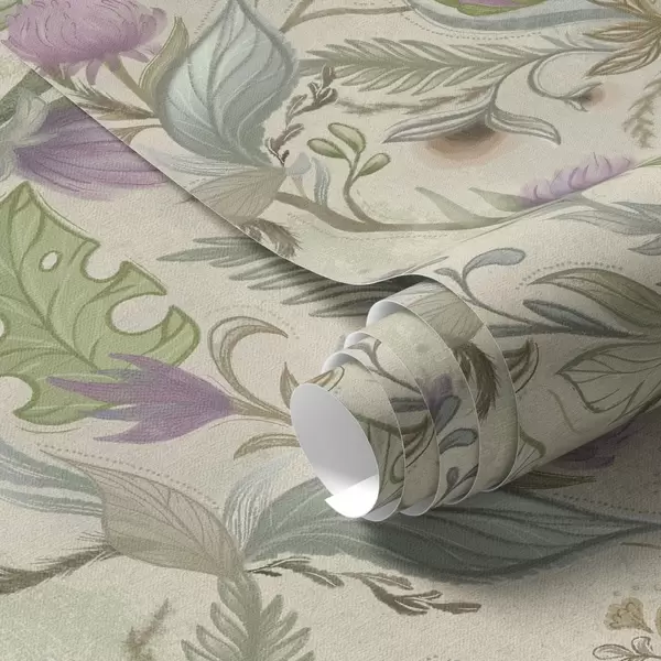 Tapete Fliederknospen und zartes Grün auf cremefarbenem Hintergrund Nr. a00930v2