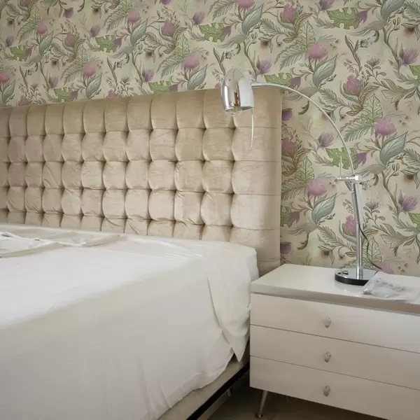 Tapete Fliederknospen und zartes Grün auf cremefarbenem Hintergrund Nr. a00930v2