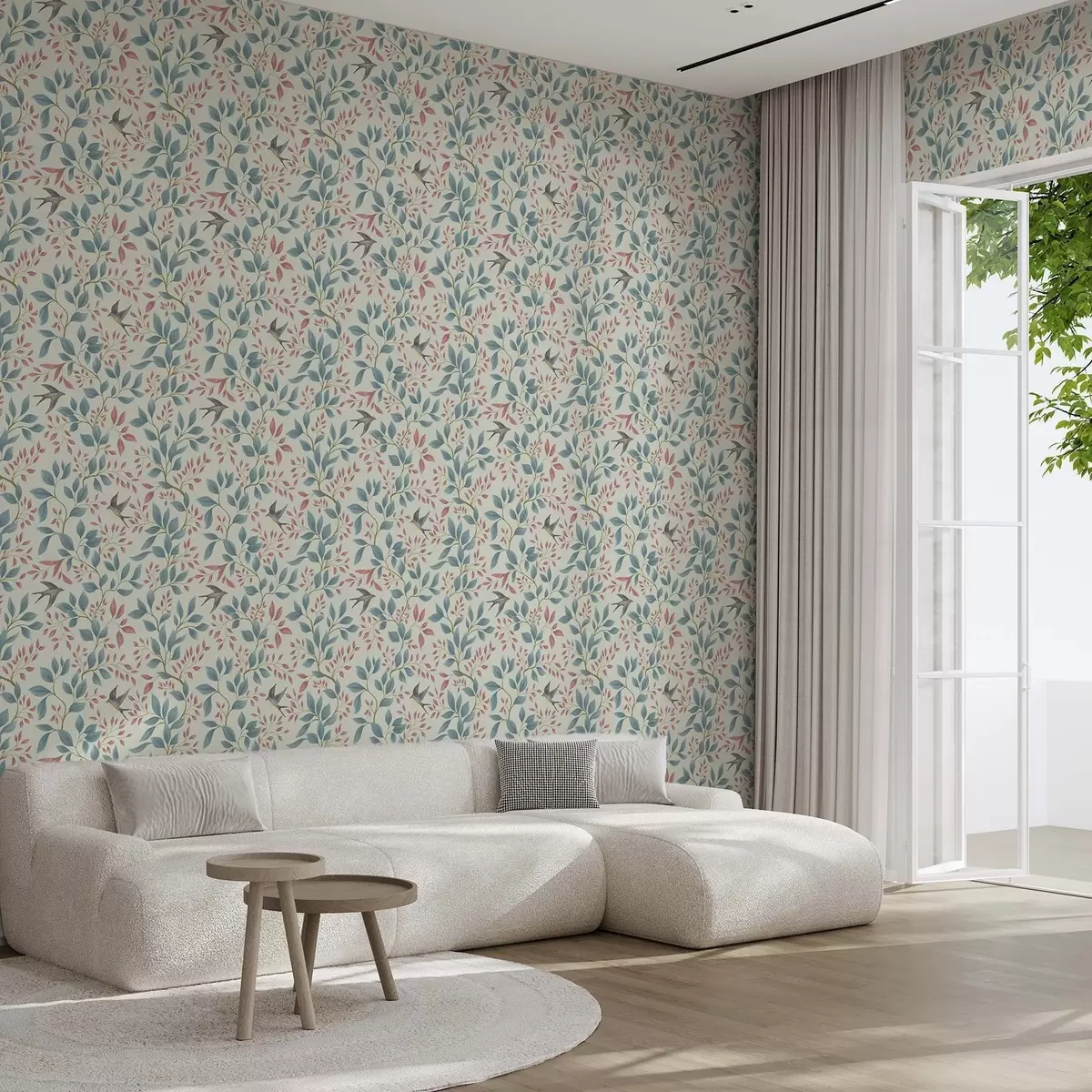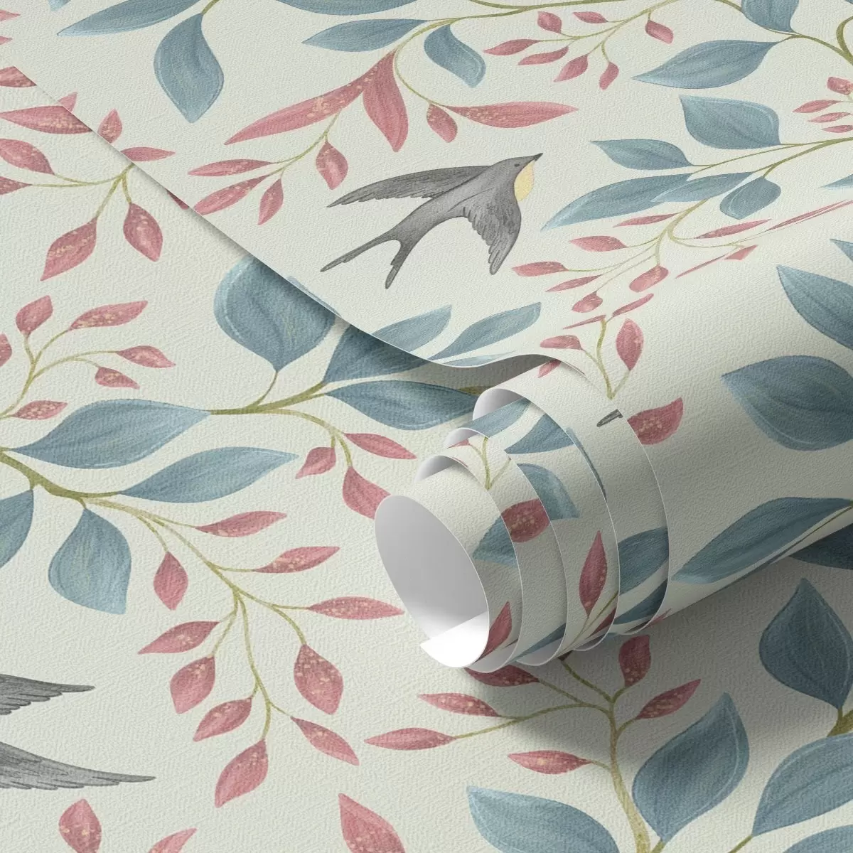 Tapete Luftige Äste und Vögel auf einem hellen Minz-Hintergrund Nr. a00933v1
