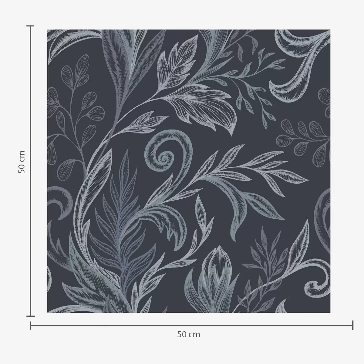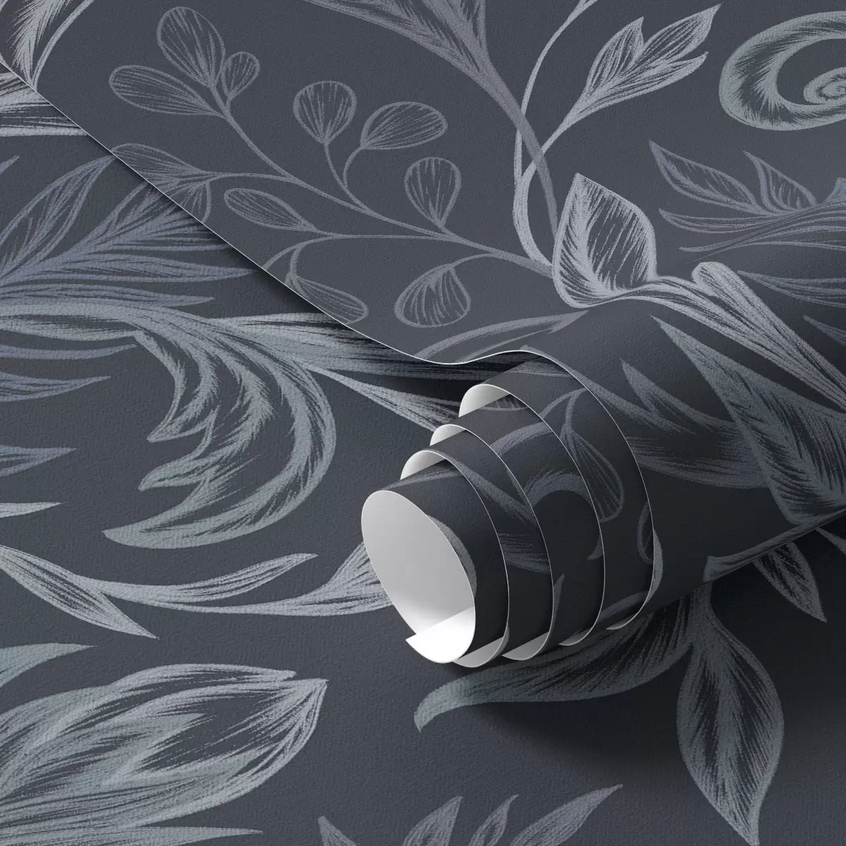 Tapete Dunkelindigo-farbene, gewellte Blätter mit handgezeichneten Schattierungen Nr. a00935