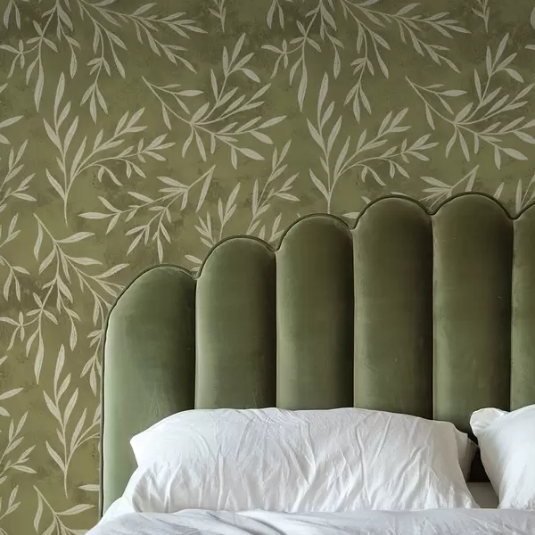 Tapete Cremeweiße Zweige auf einem warmen olivfarbenen strukturierten Hintergrund Nr. a00936v1