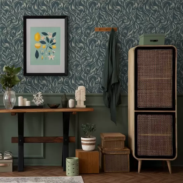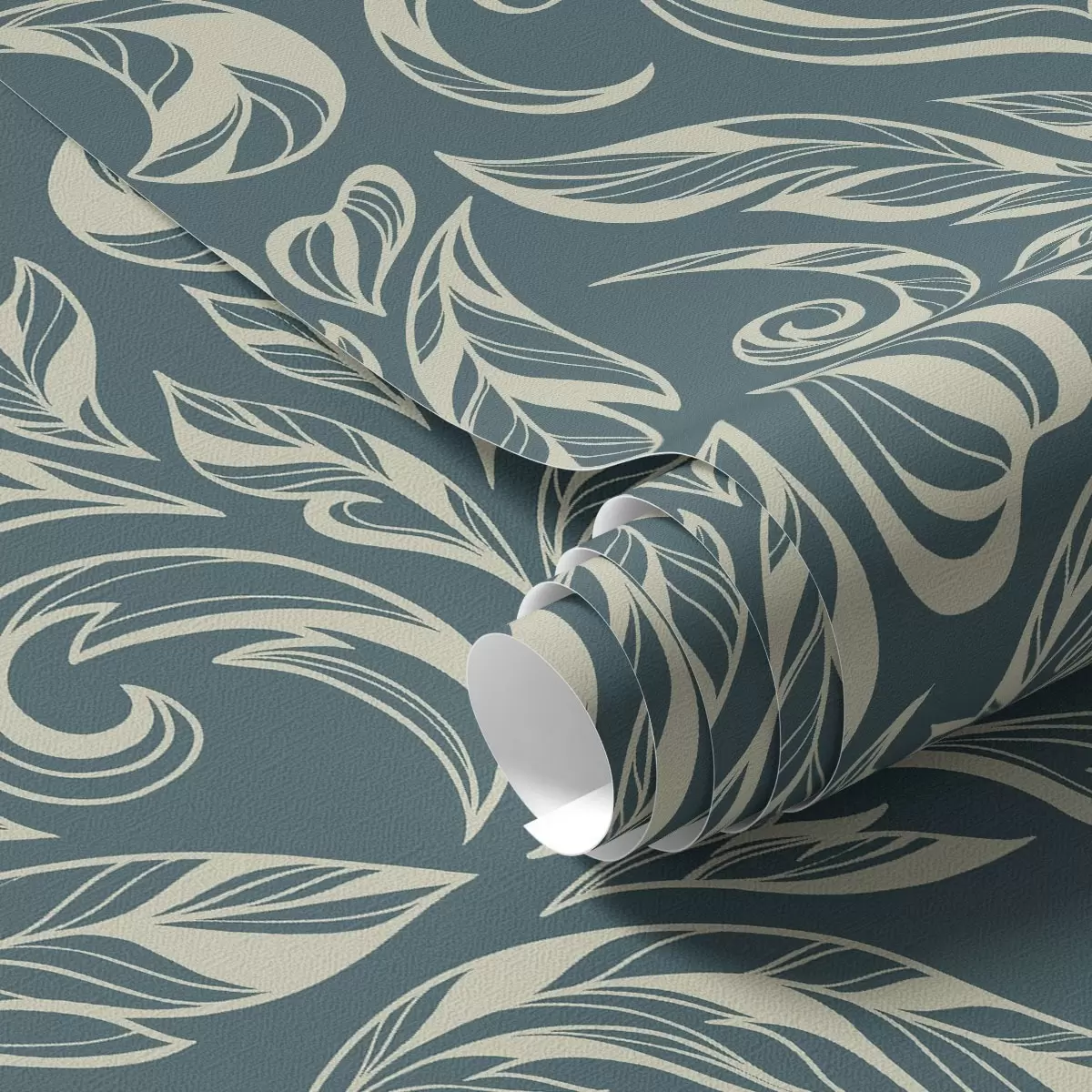 Tapete Blattmuster aus hellen Linien auf blaugrauem Hintergrund Nr. a00940