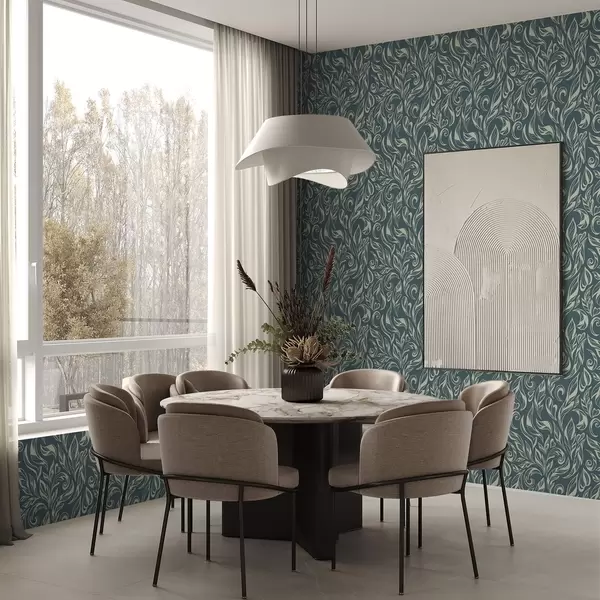 Tapete Blattmuster aus hellen Linien auf blaugrauem Hintergrund Nr. a00940