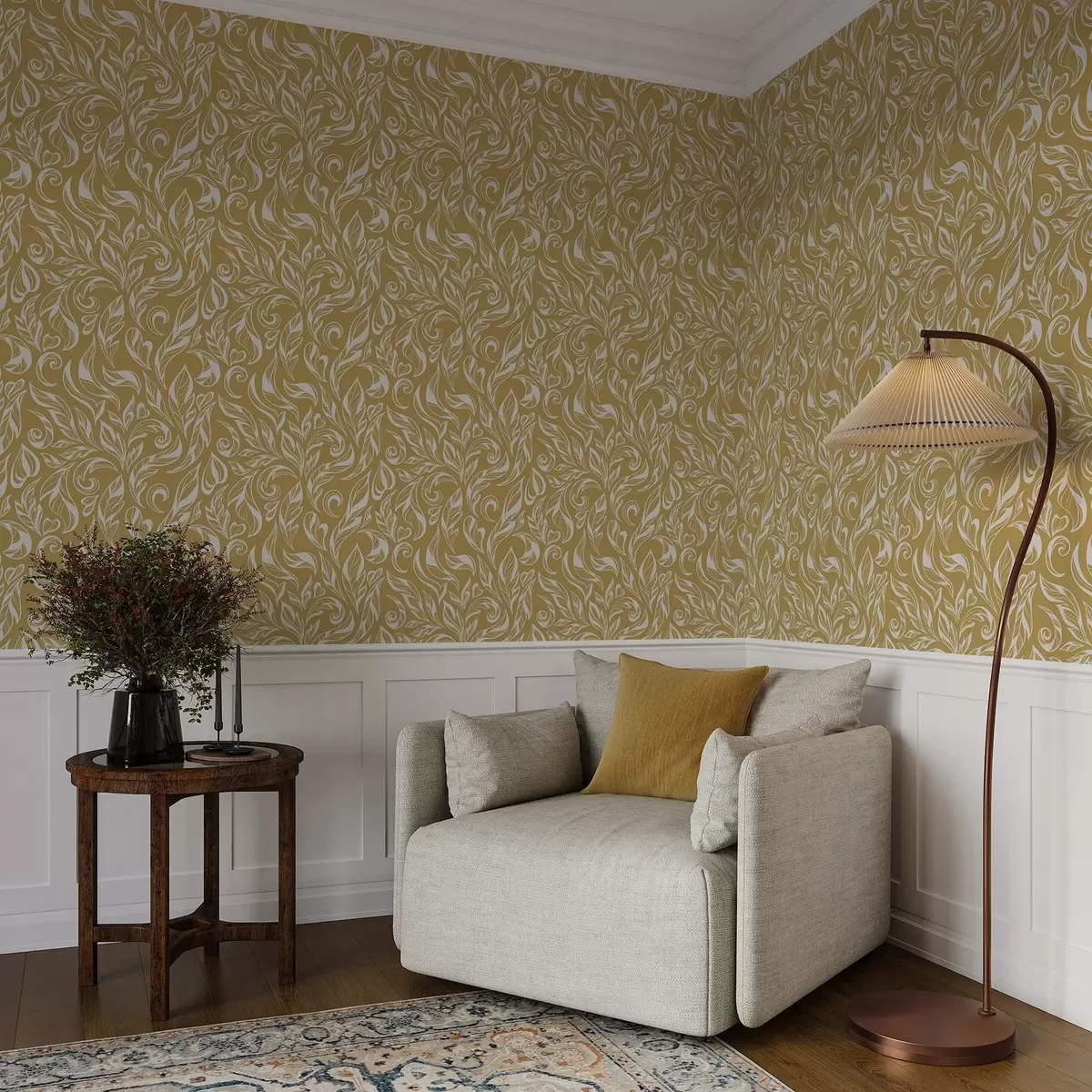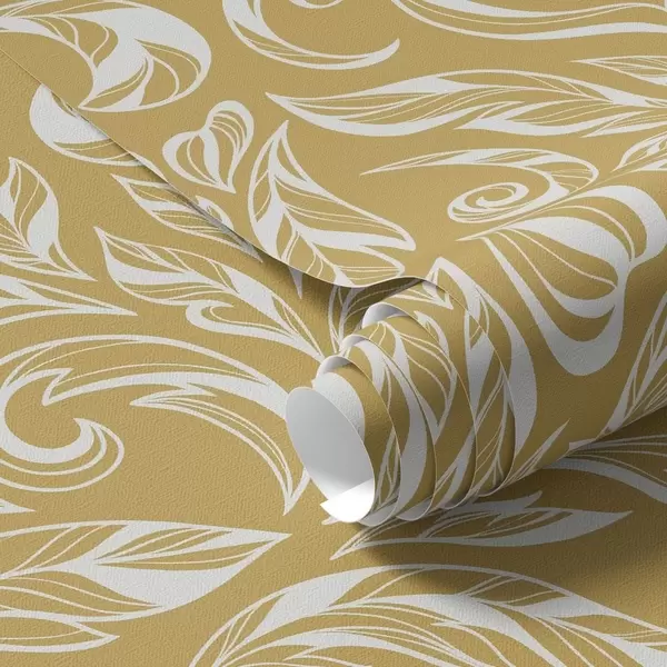 Tapete Cremeweißes Blattornament auf warmem Ockerhintergrund Nr. a00940v1