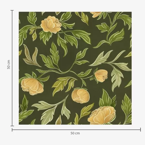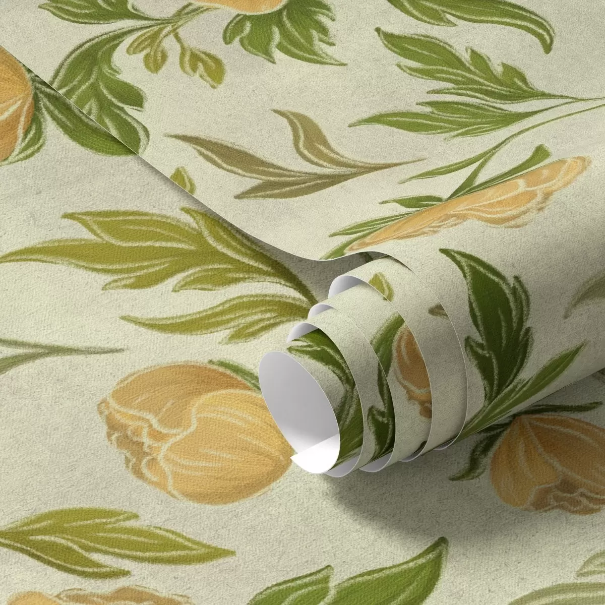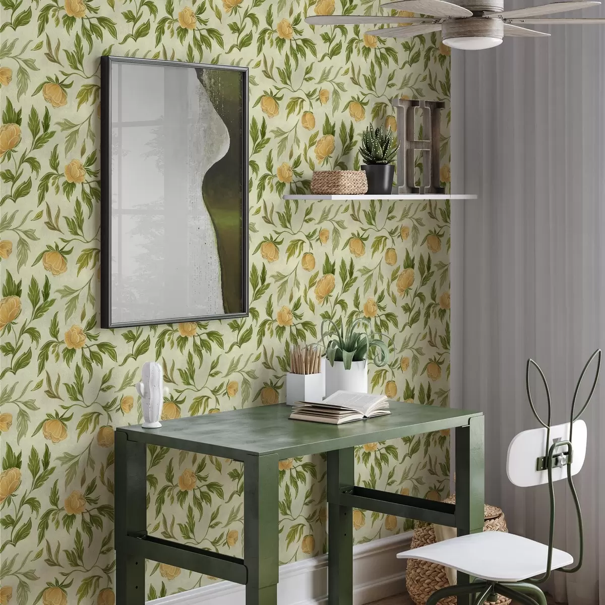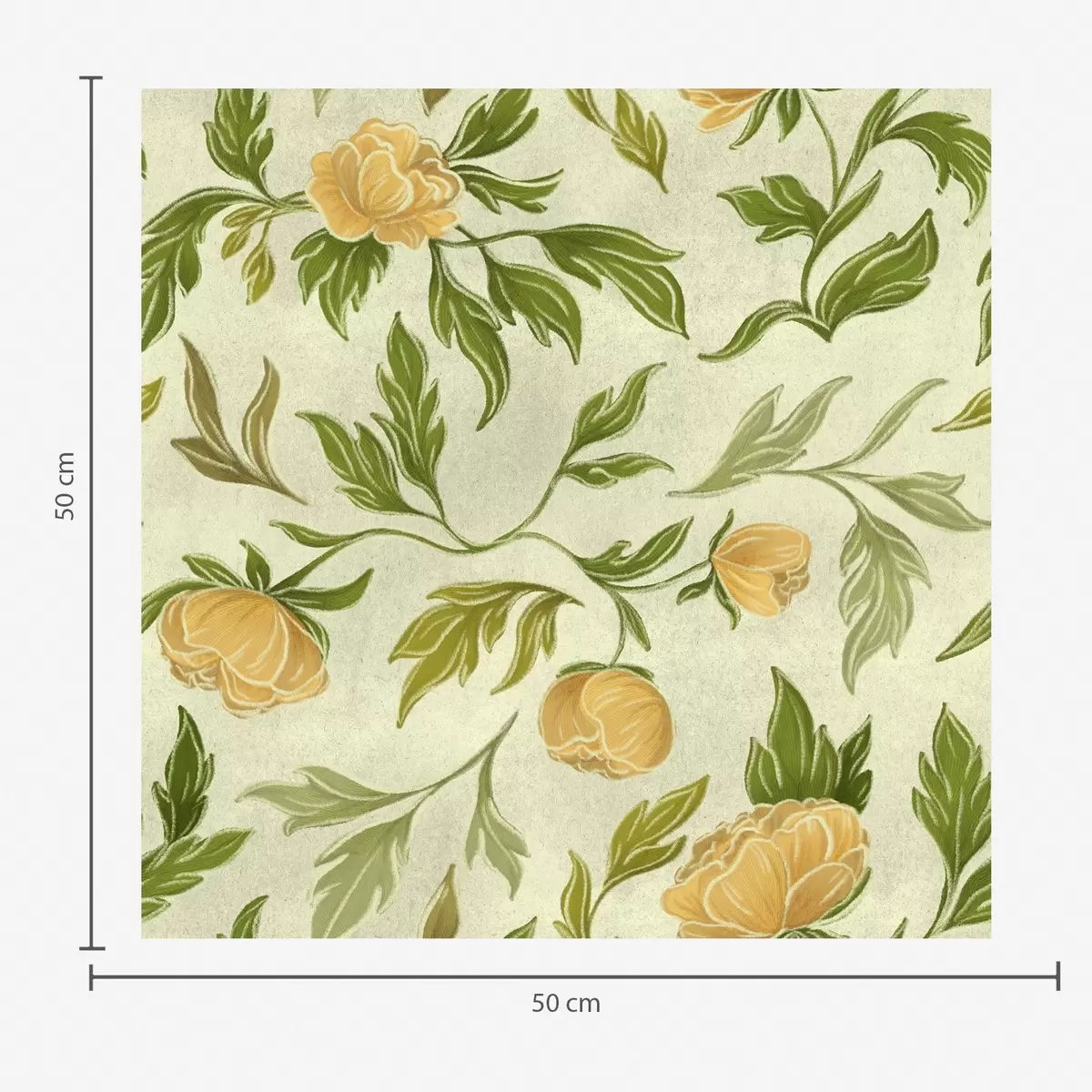 Tapete Gelbe Pfingstrosen und Blätter auf einem sanften hellgrünen Hintergrund Nr. a00942