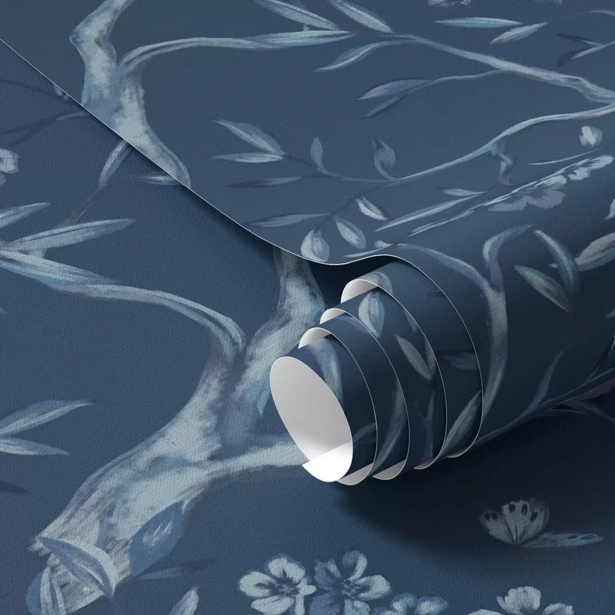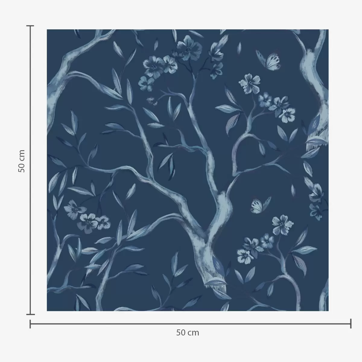 Tapete Blaue blühende Zweige mit Schmetterlingen auf dunklem Hintergrund Nr. a00951v1