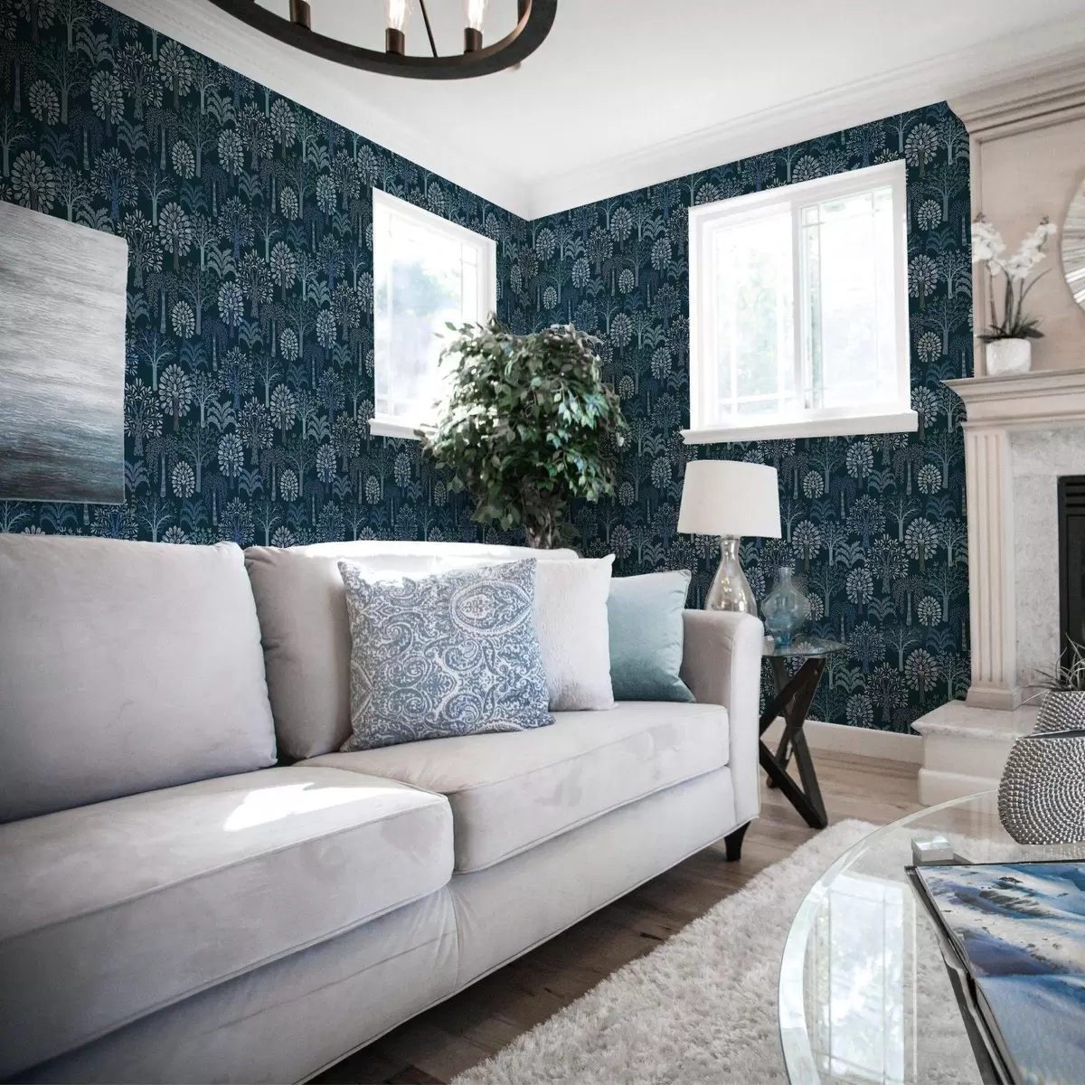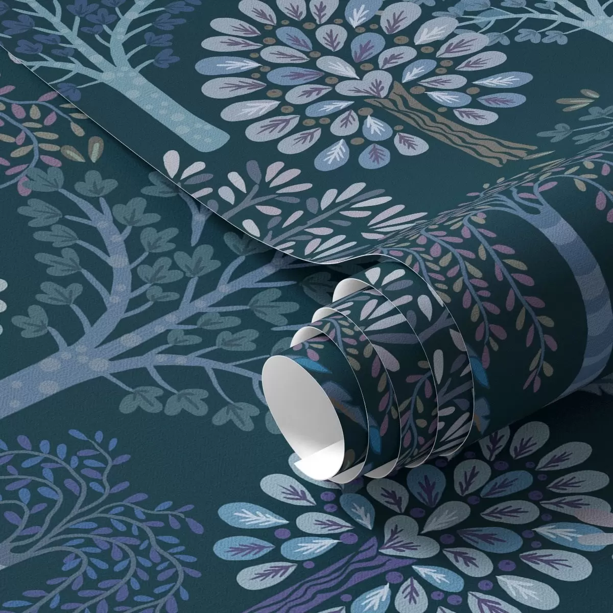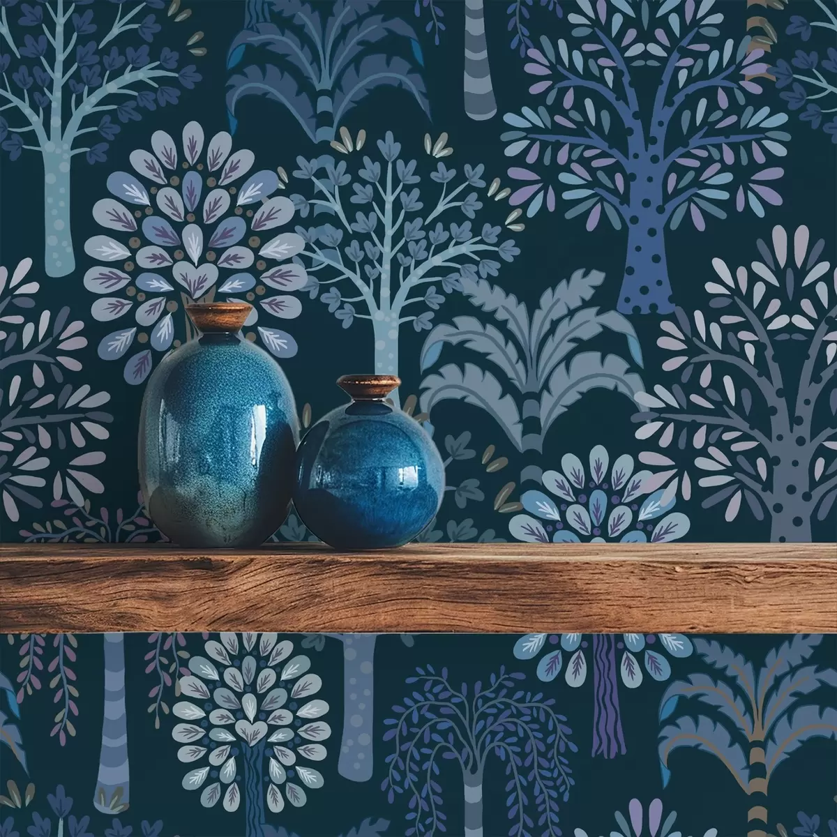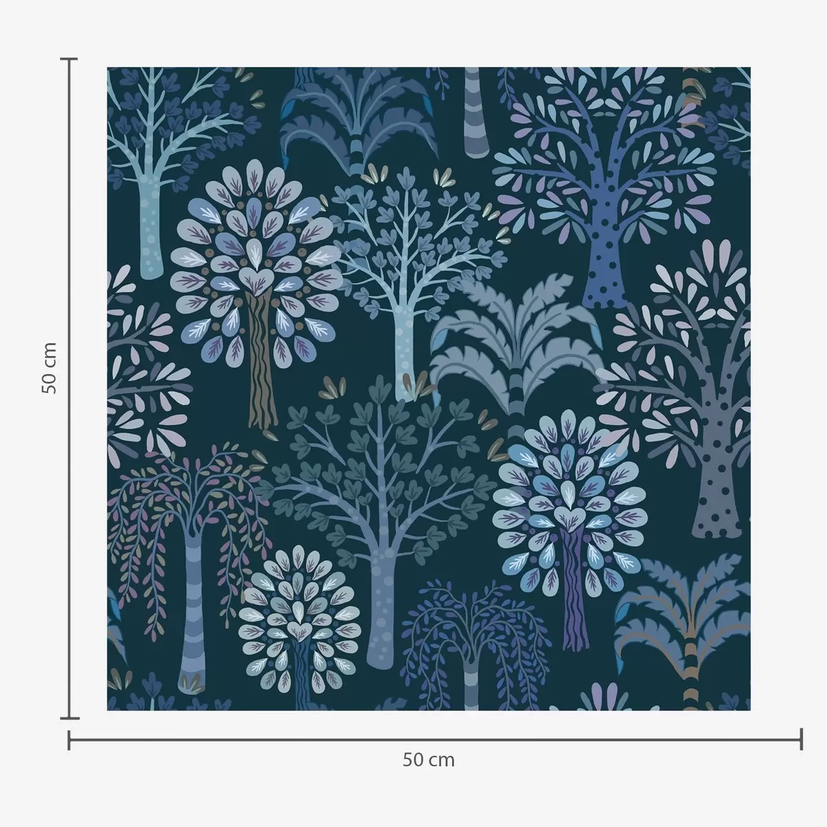 Tapete Nachtwald mit dekorativen Bäumen in Blautönen Nr. a00960v2
