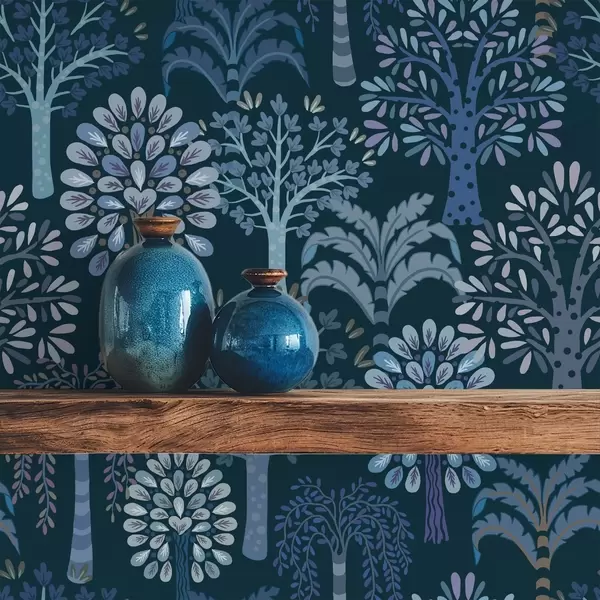 Tapete Nachtwald mit dekorativen Bäumen in Blautönen Nr. a00960v2