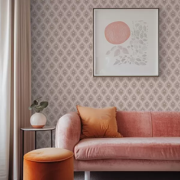 Tapete Rhythmisches Tropfenmotiv mit einer Blume auf pudrigem Hintergrund Nr. a00977