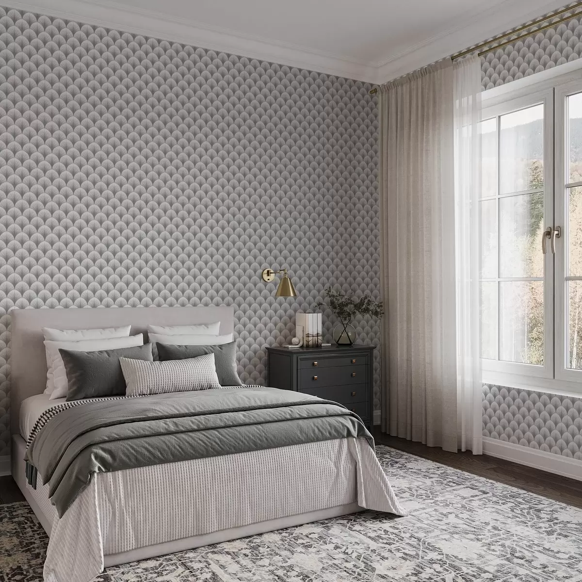 Tapete Kontrastierende graue Fächerbögen auf weißem Hintergrund Nr. a00978v4