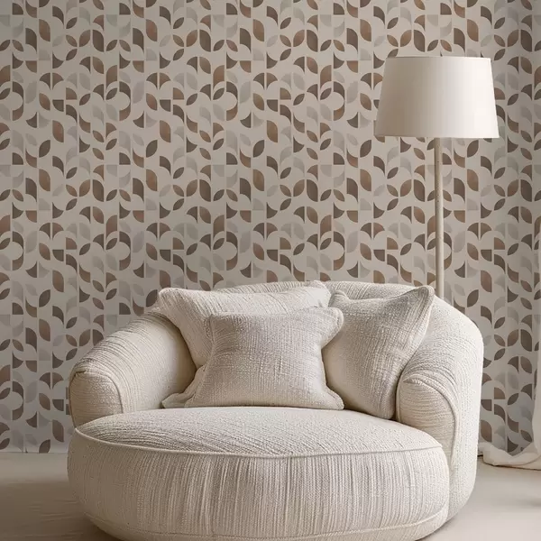 Tapete Rhythmus aus Halbkreisen und Blättern in warmen Karamellbrauntönen Nr. a00986v1