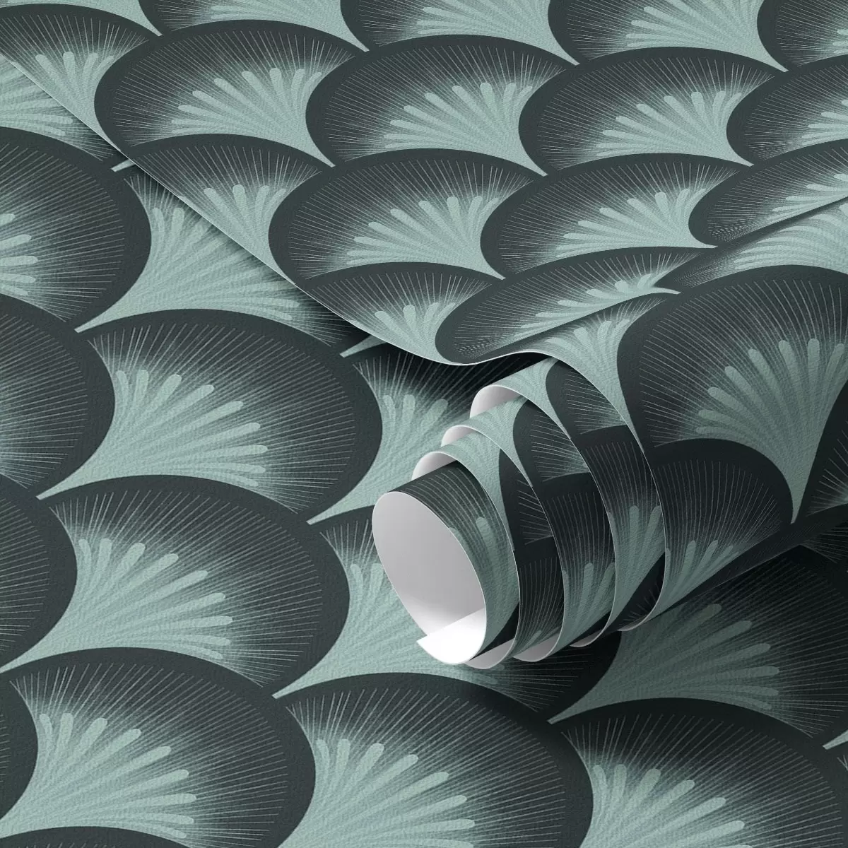 Tapete Kontrastierende Minzfächer auf fast schwarzem Hintergrund Nr. a00990