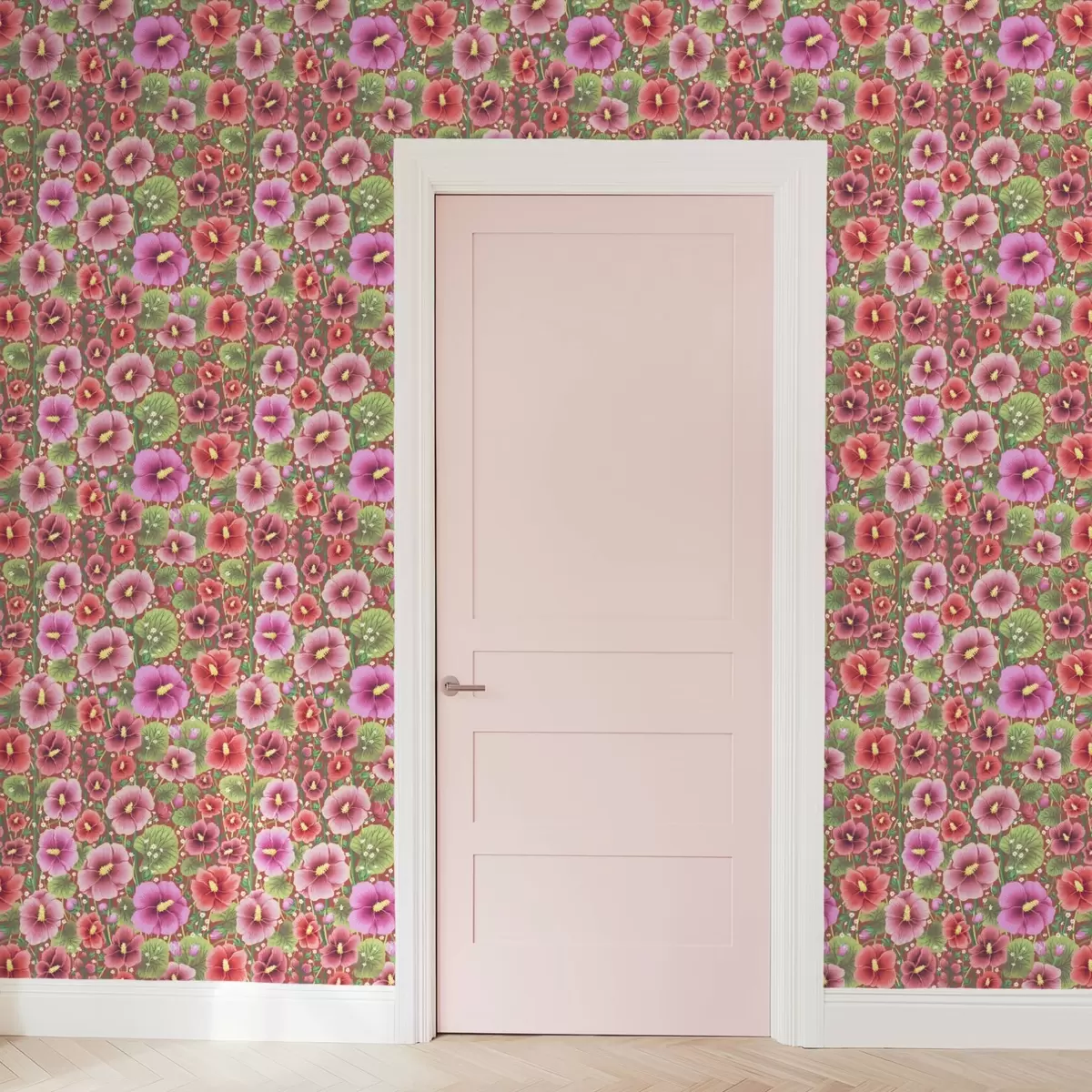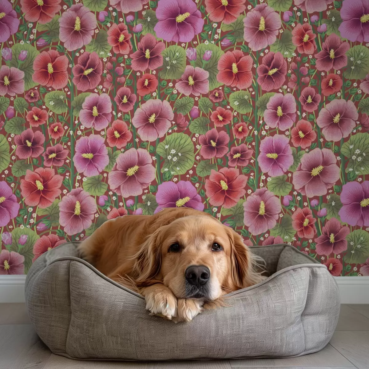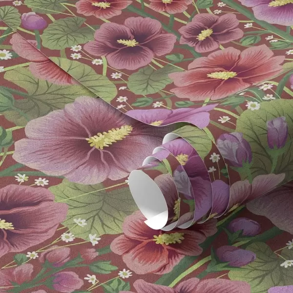 Tapete Blühender Hibiskus auf warmem, bräunlich-rotem Hintergrund Nr. a00993v1