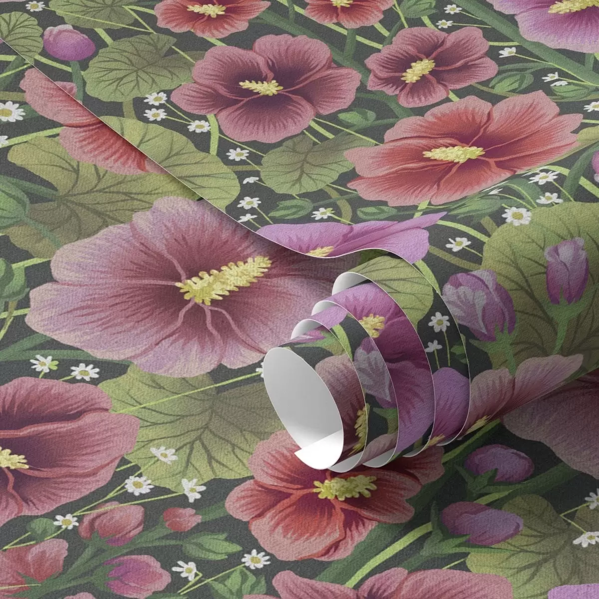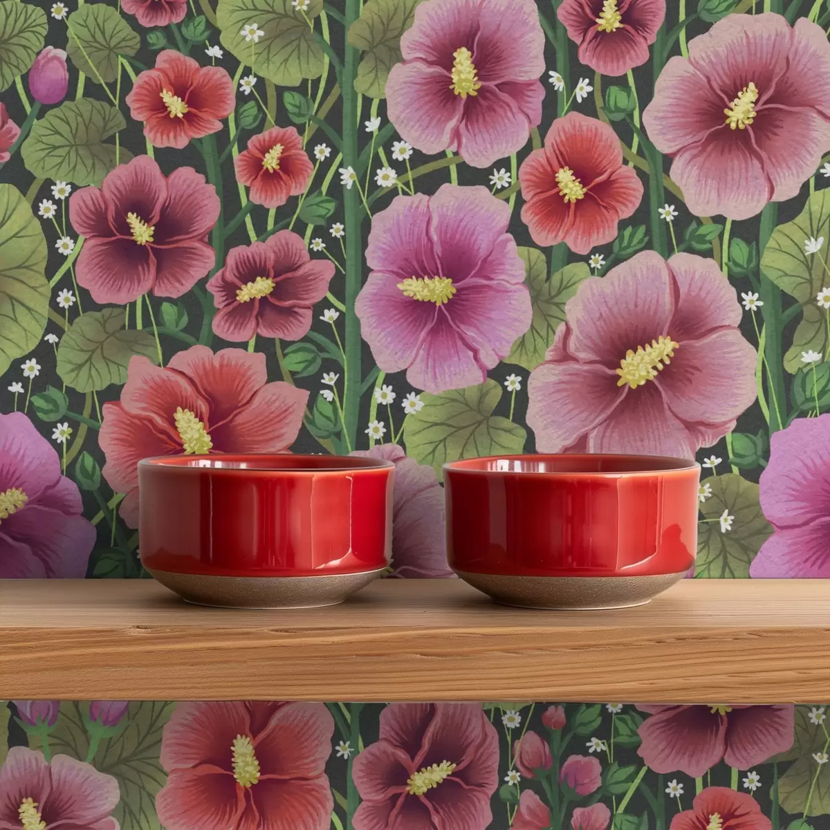 Tapete Leuchtende Hibiskusblüten und Grünpflanzen auf dunklem Hintergrund Nr. a00993v2