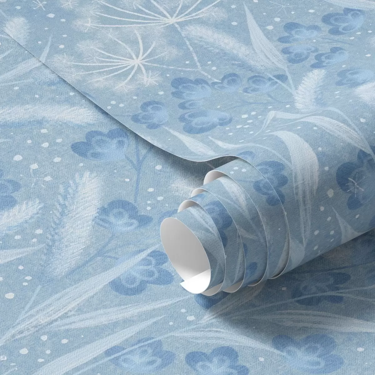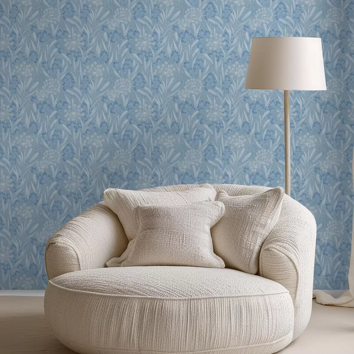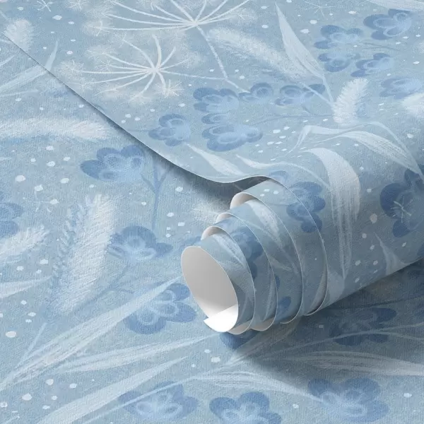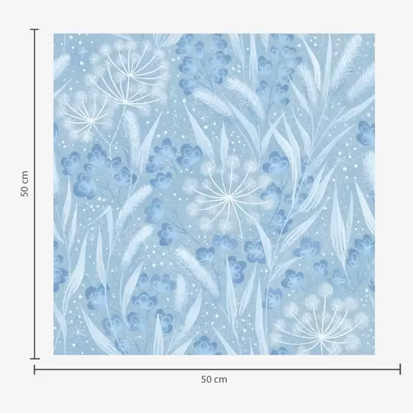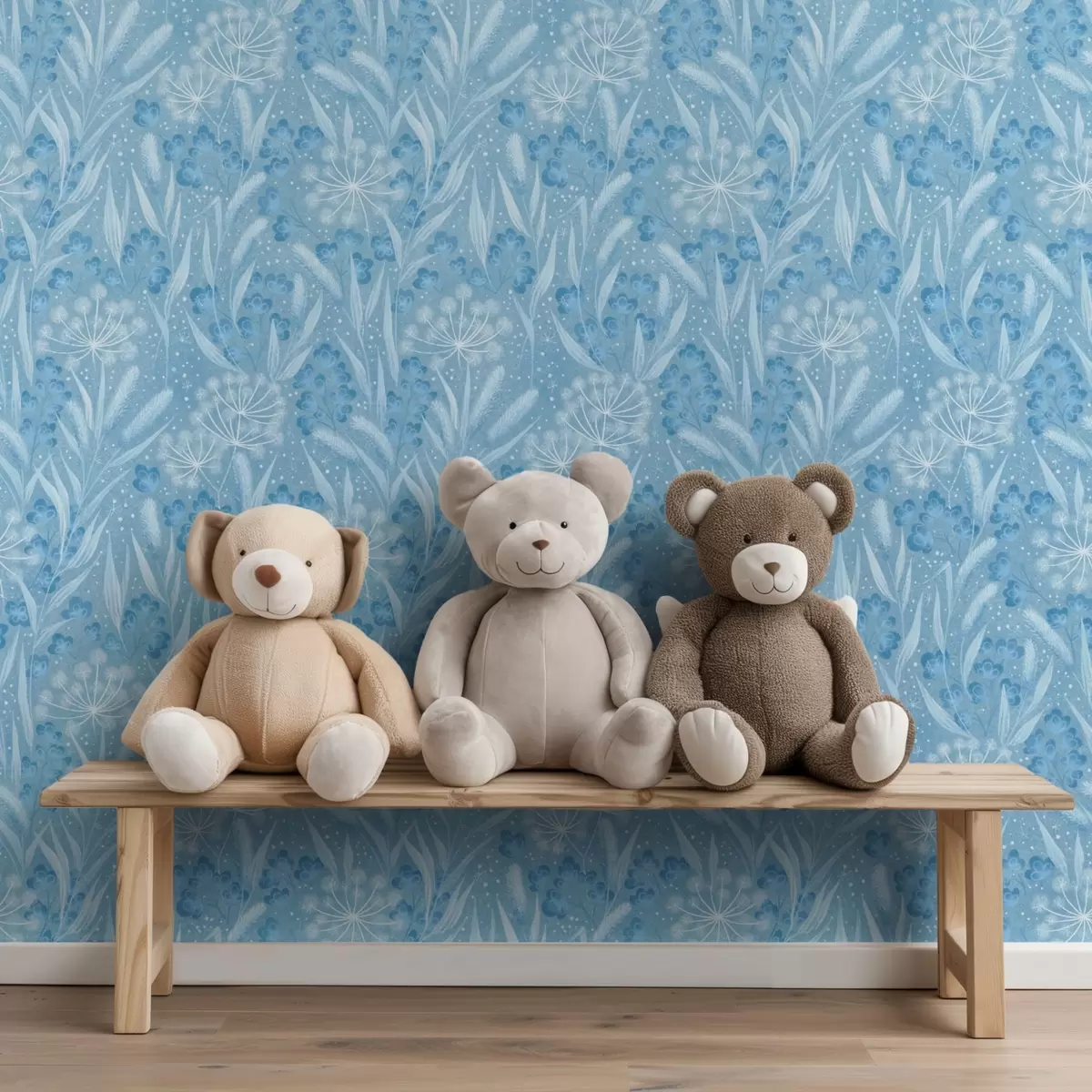 Tapete Frostige blaue Wiese mit Löwenzahnsamen und winzigen Blumen Nr. a00995