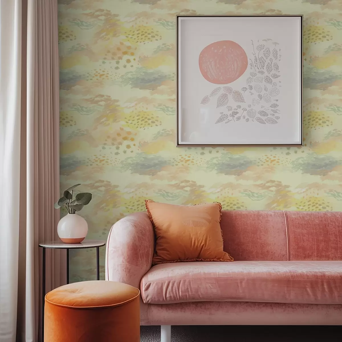 Tapete Pastellfarbene Pinselstriche in einer warmen, cremig-gelben Farbpalette Nr. a00999v1
