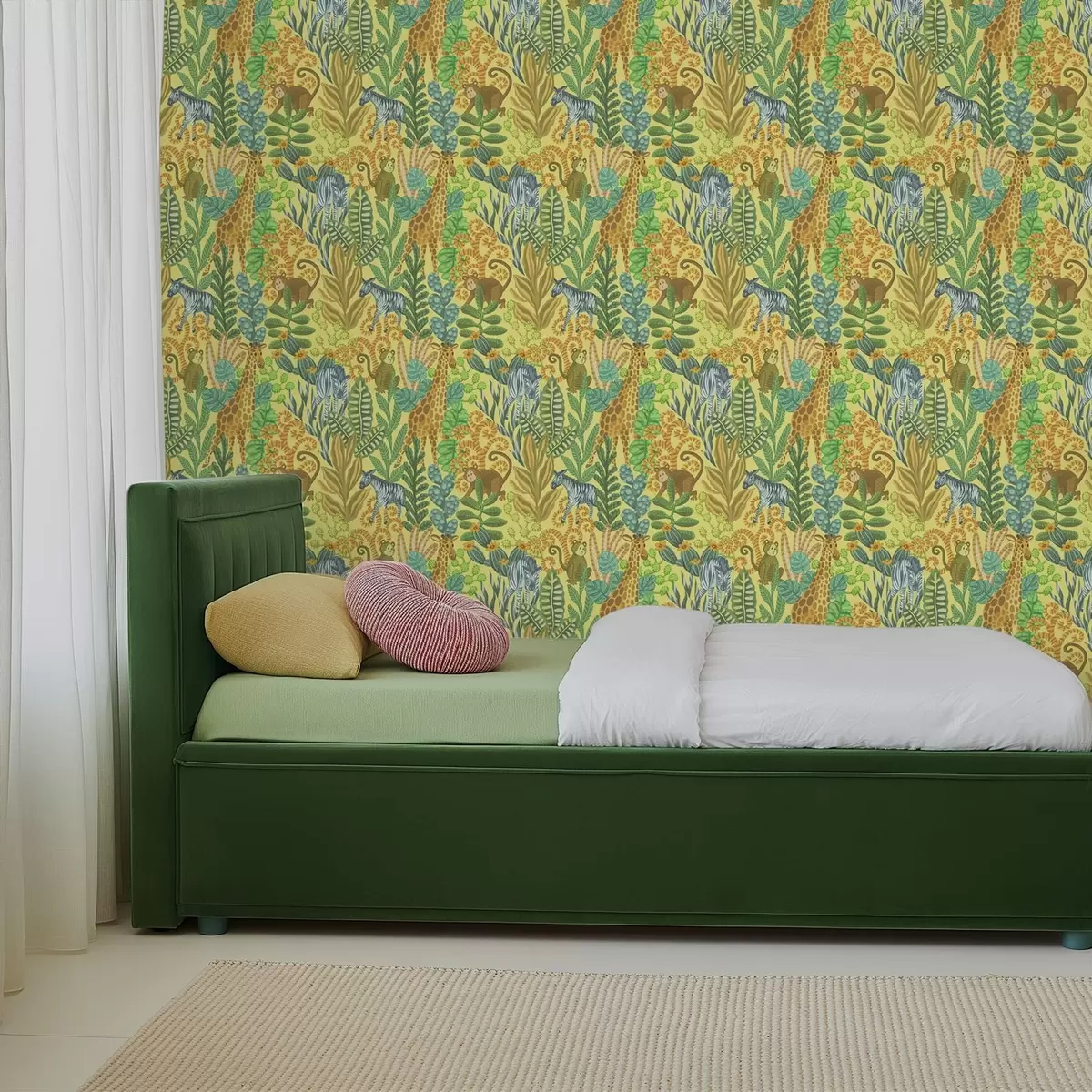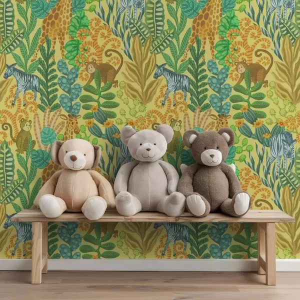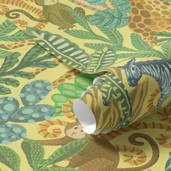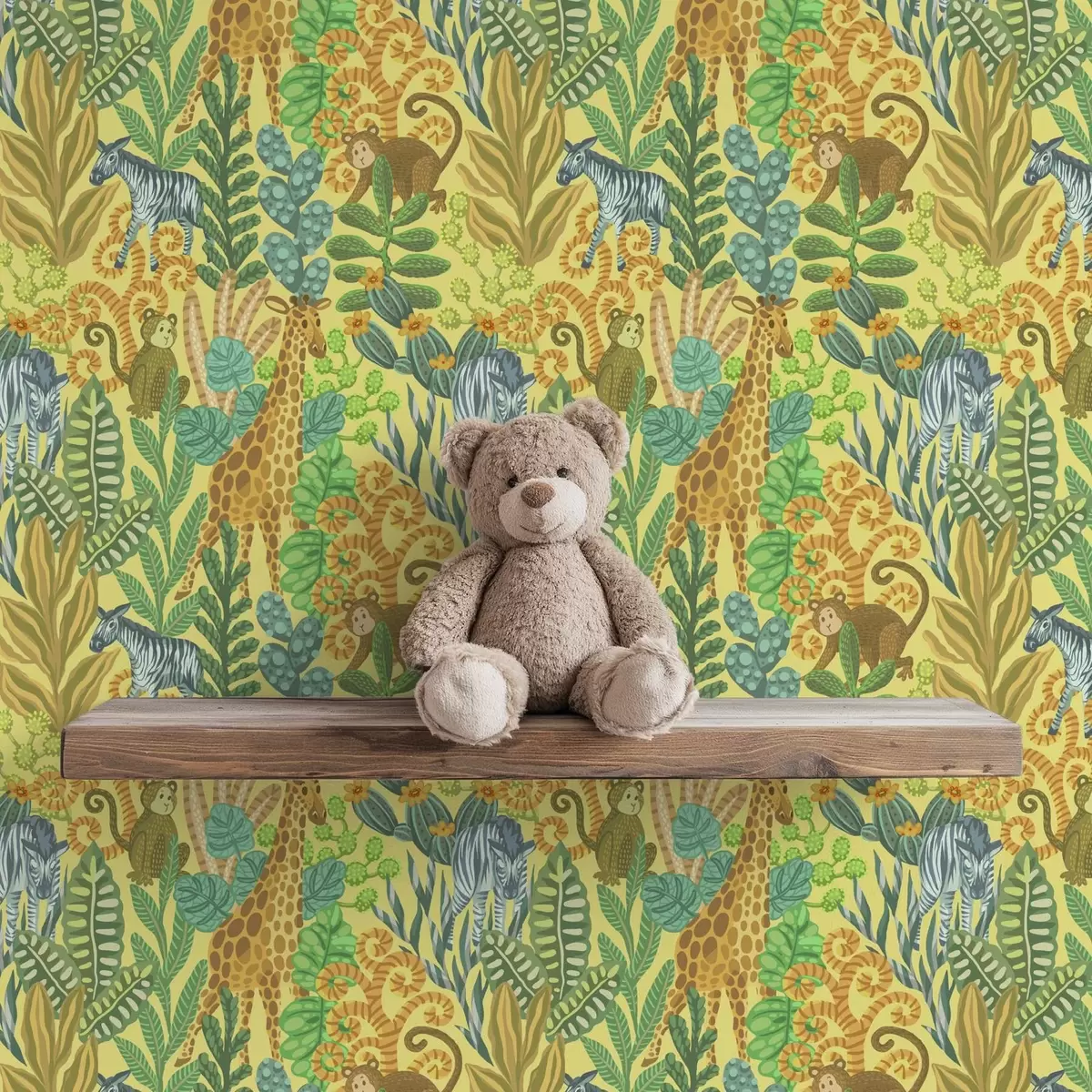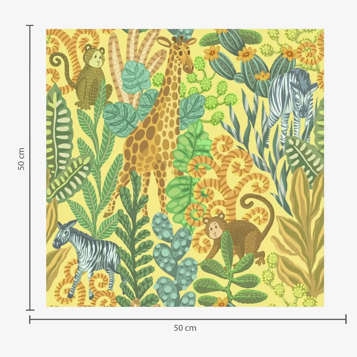 Tapete Giraffe, Zebra und Affe in einer leuchtend gelben Savanne Nr. a01000v1