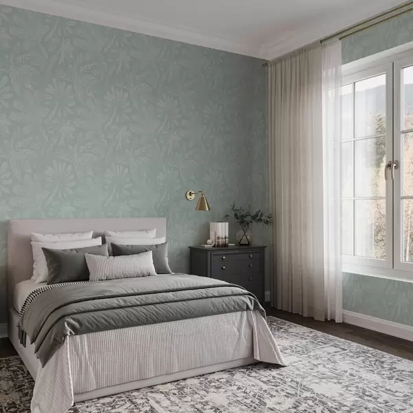 Tapete Matte große tropische Blätter in einer mintgrauen Farbpalette Nr. a01001