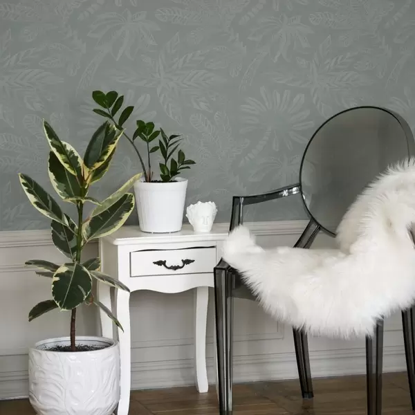 Tapete Matte große tropische Blätter in einer mintgrauen Farbpalette Nr. a01001