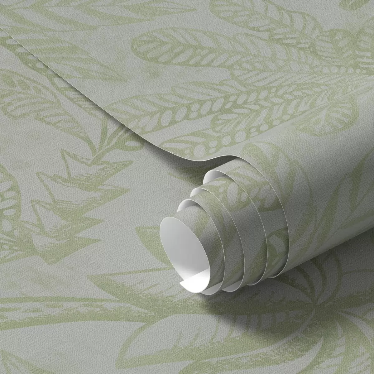 Tapete Skizzierte tropische Blätter in frischen Hellgrüntönen Nr. a01001v1