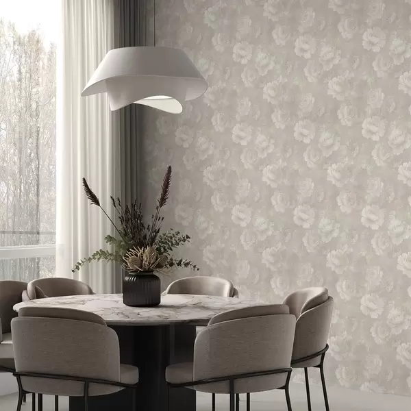 Tapete Verblasste Pfingstrosen auf Leinenstruktur in sanften Beigetönen Nr. a01018