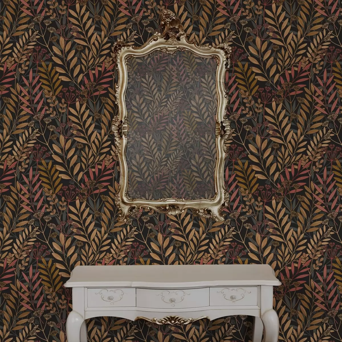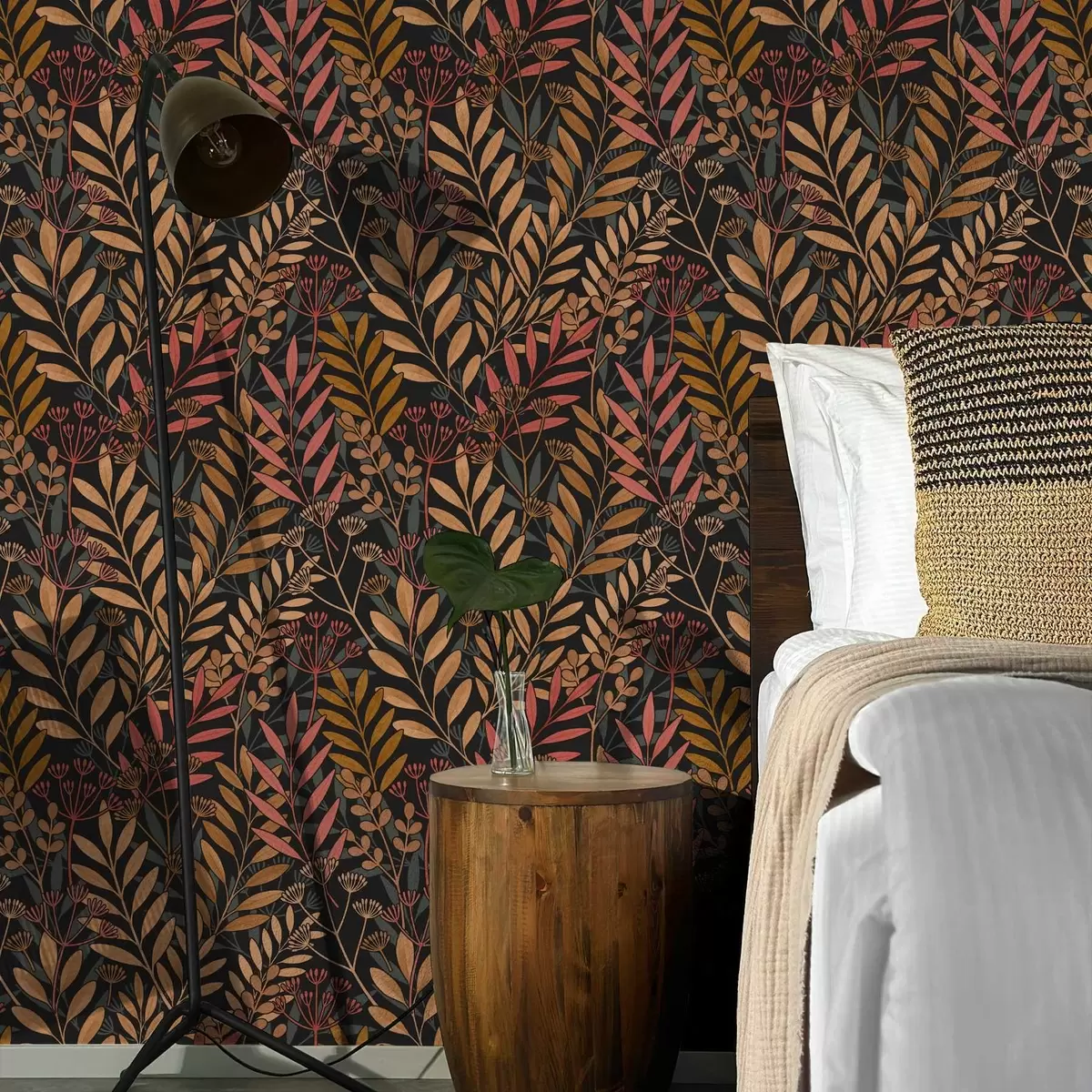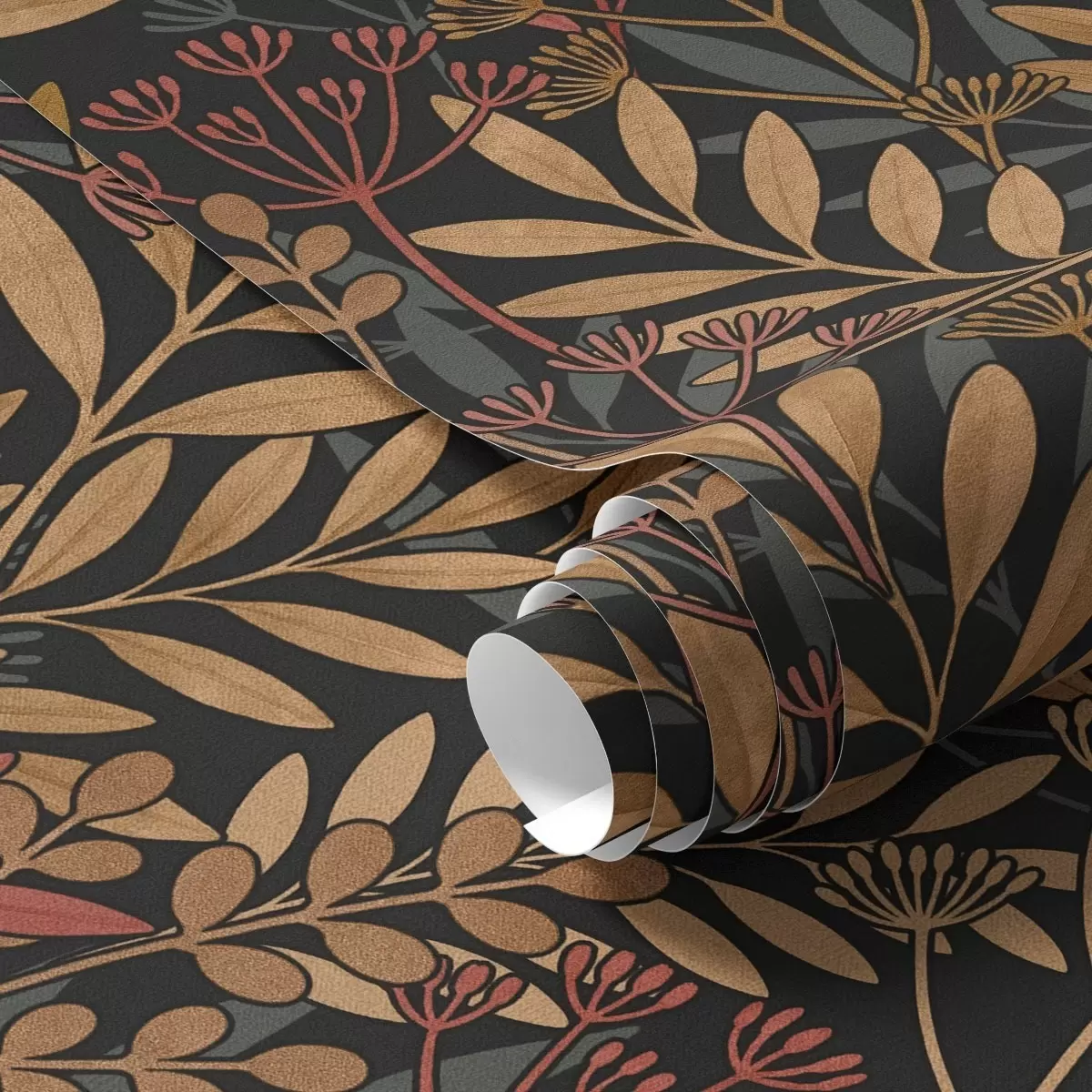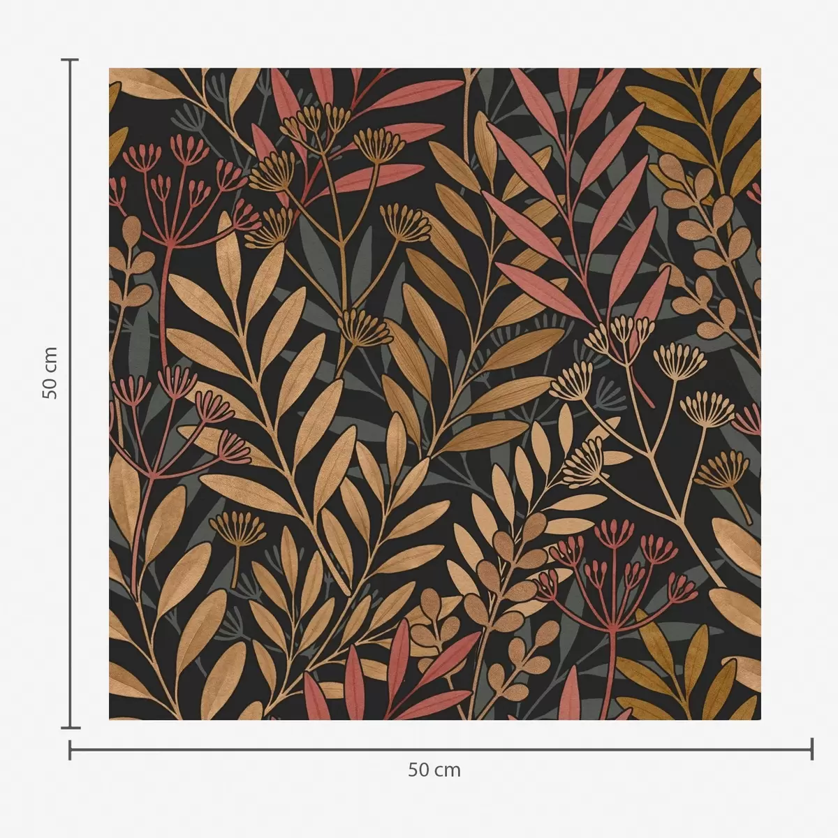 Tapete Dunkle Wiese mit stilisierten Blättern und Samenkapseln Nr. a01020