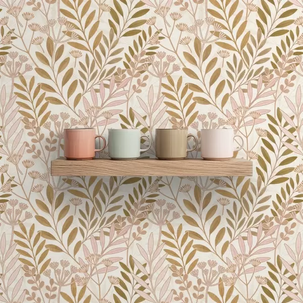 Tapete Leichtes botanisches Muster mit zarten rosa und haferfarbenen Blättern Nr. a01020v1