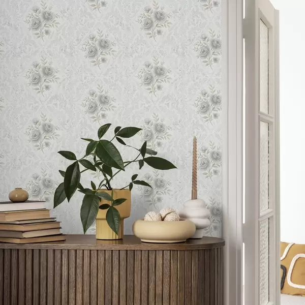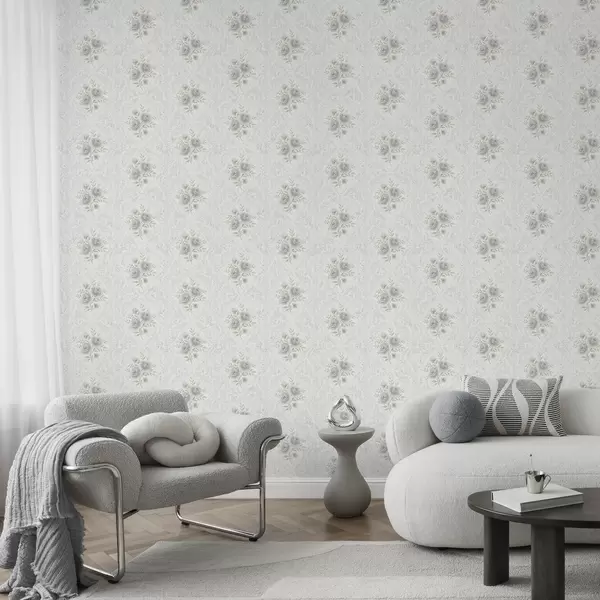 Tapete Helles Damastmuster mit grauen Rosen in weichen Rauten Nr. a01024