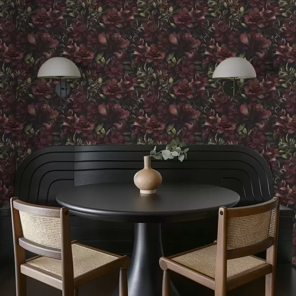 Tapete Satte burgunderrote Blumen auf dunklem Hintergrund Nr. a01032