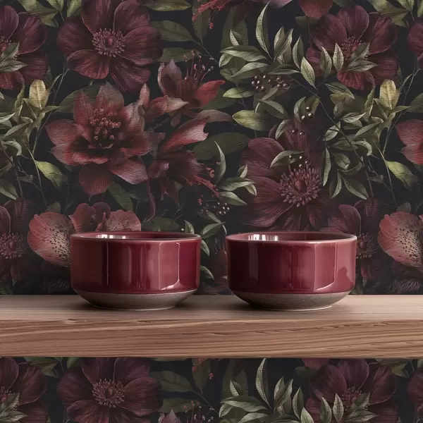 Tapete Satte burgunderrote Blumen auf dunklem Hintergrund Nr. a01032