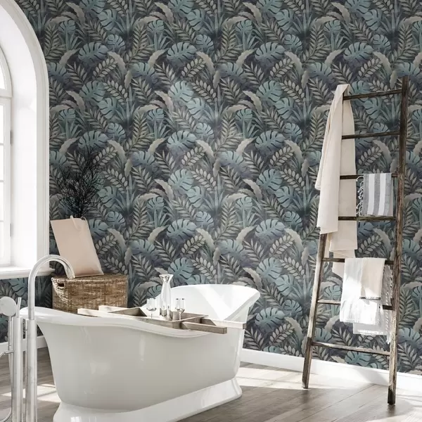 Tapete Tropisches Laub in kühlen Blaugrüntönen Nr. a01035
