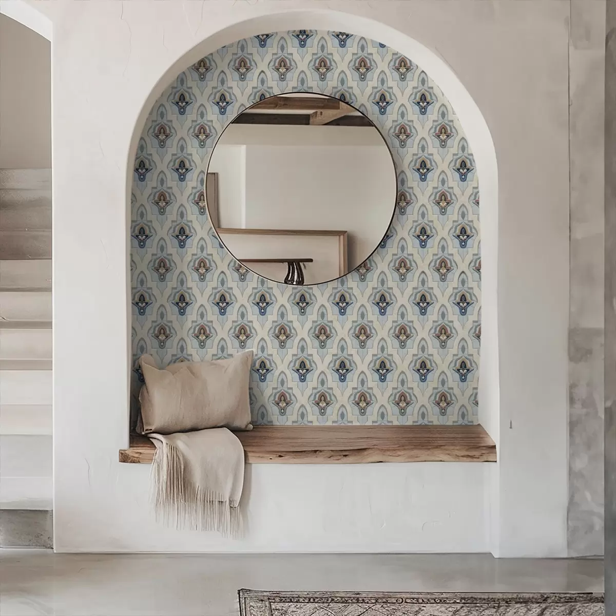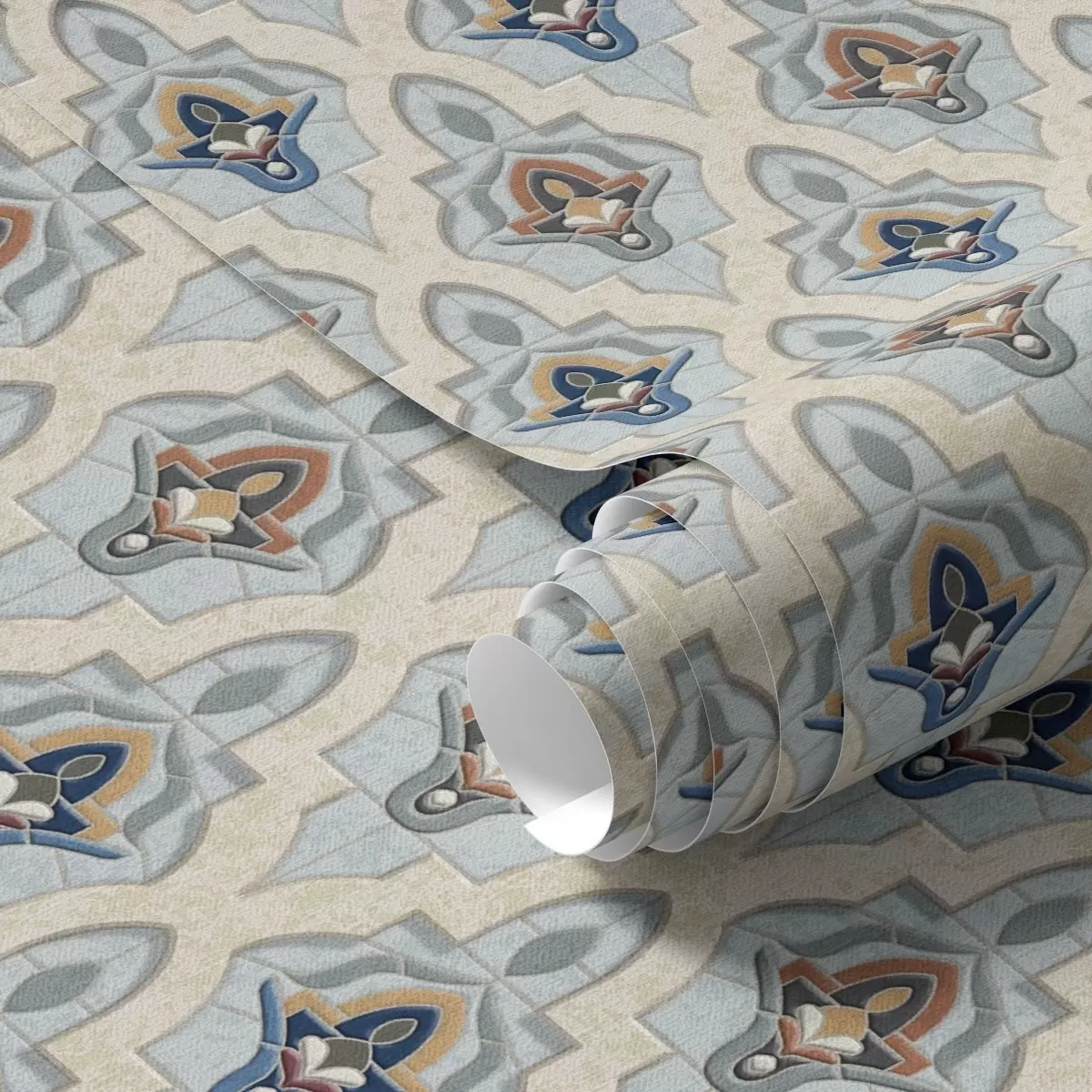 Tapete Orientalisches Muster aus kleinen Fliesen in einer Blau-Sand-Farbpalette Nr. a01044