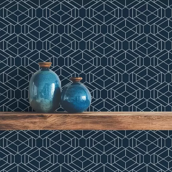 Tapete Dunkelblaues geometrisches Gitter aus Würfeln Nr. a01066v1