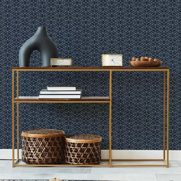 Tapete Dunkelblaues geometrisches Gitter aus Würfeln Nr. a01066v1