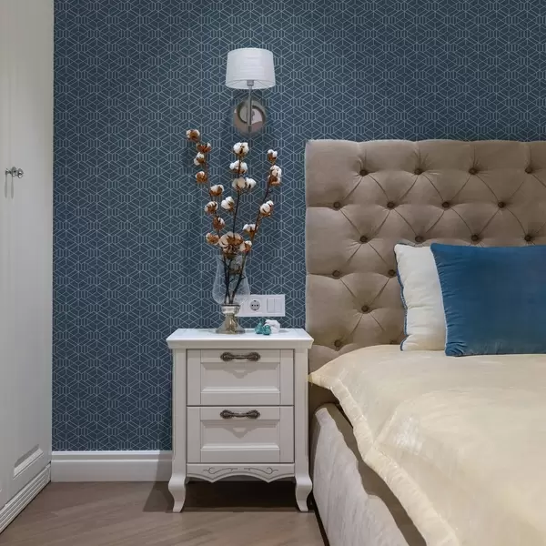 Tapete Blauer Hintergrund mit weißen linearen Würfeln in einem Raster Nr. a01067v1