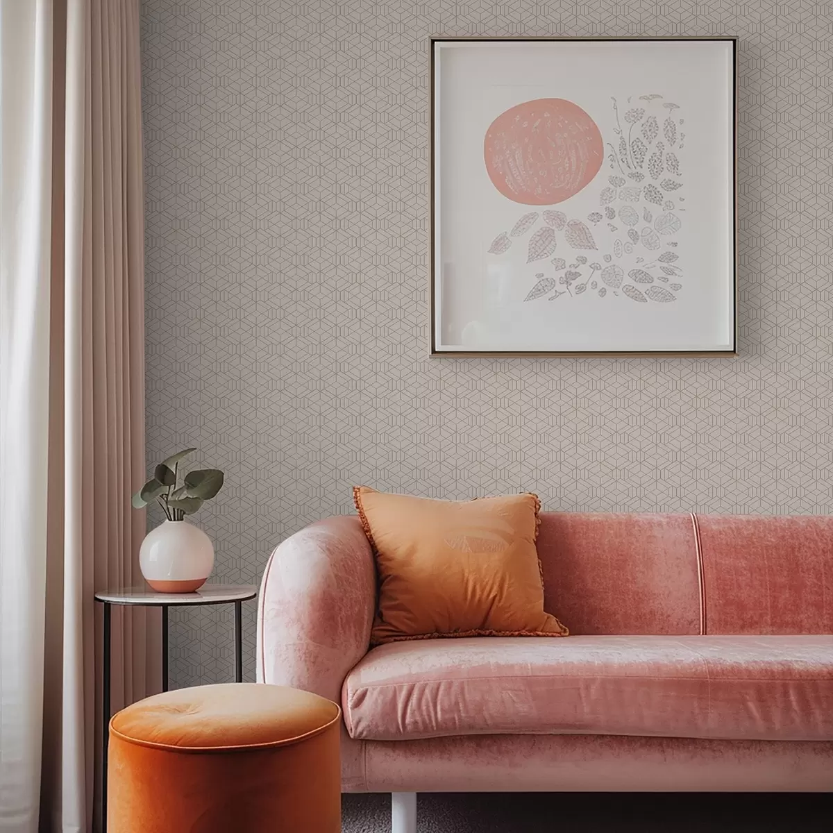 Tapete Warmer beiger Hintergrund mit feinen grafischen Würfeln Nr. a01067v3