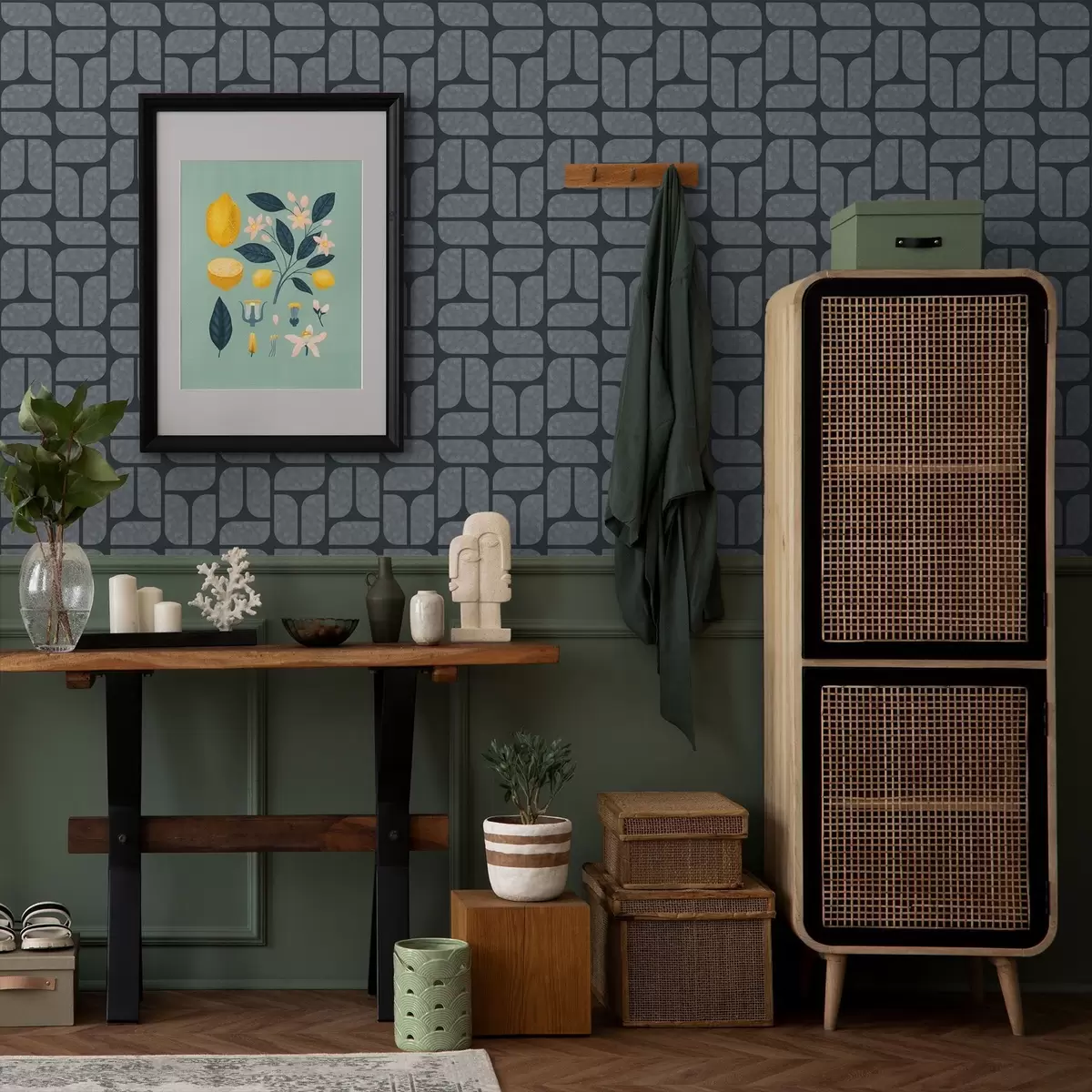 Tapete Dunkler Hintergrund mit grauem Mosaik aus abgerundeten Modulen Nr. a01069v1