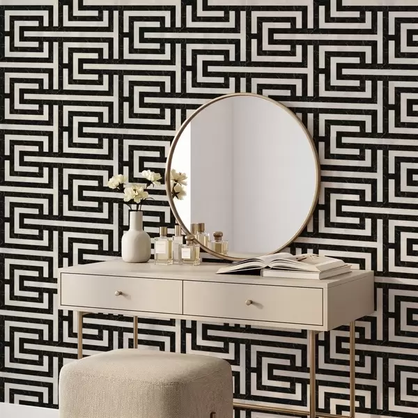 Tapete Schwarz-weißes geometrisches Labyrinthmuster Nr. a01073