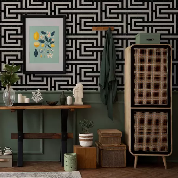Tapete Schwarz-weißes geometrisches Labyrinthmuster Nr. a01073