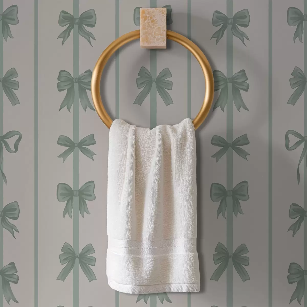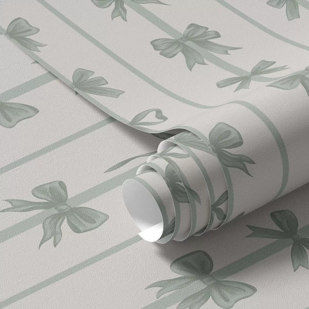 Tapete Grüne Schleifen in Streifen auf beigem Hintergrund Nr. a01075v1