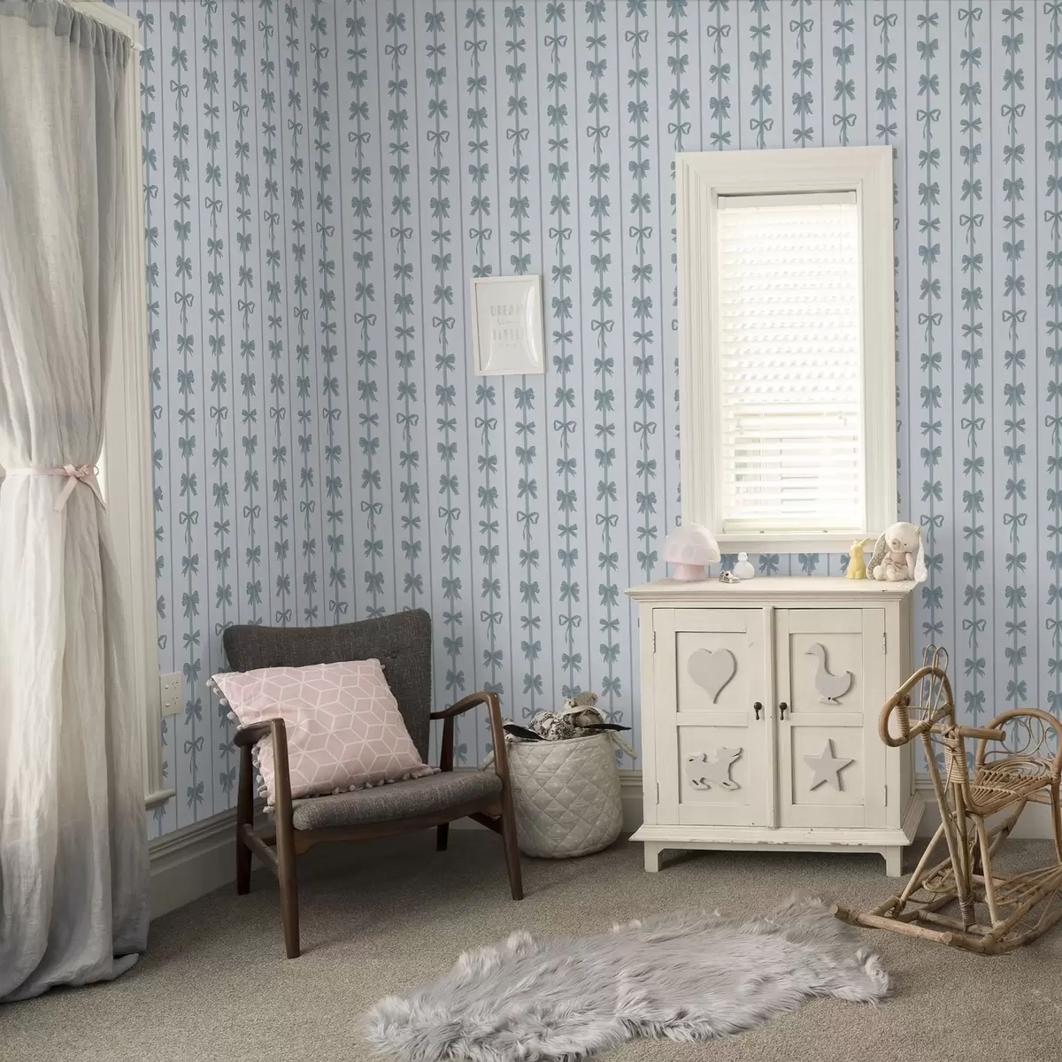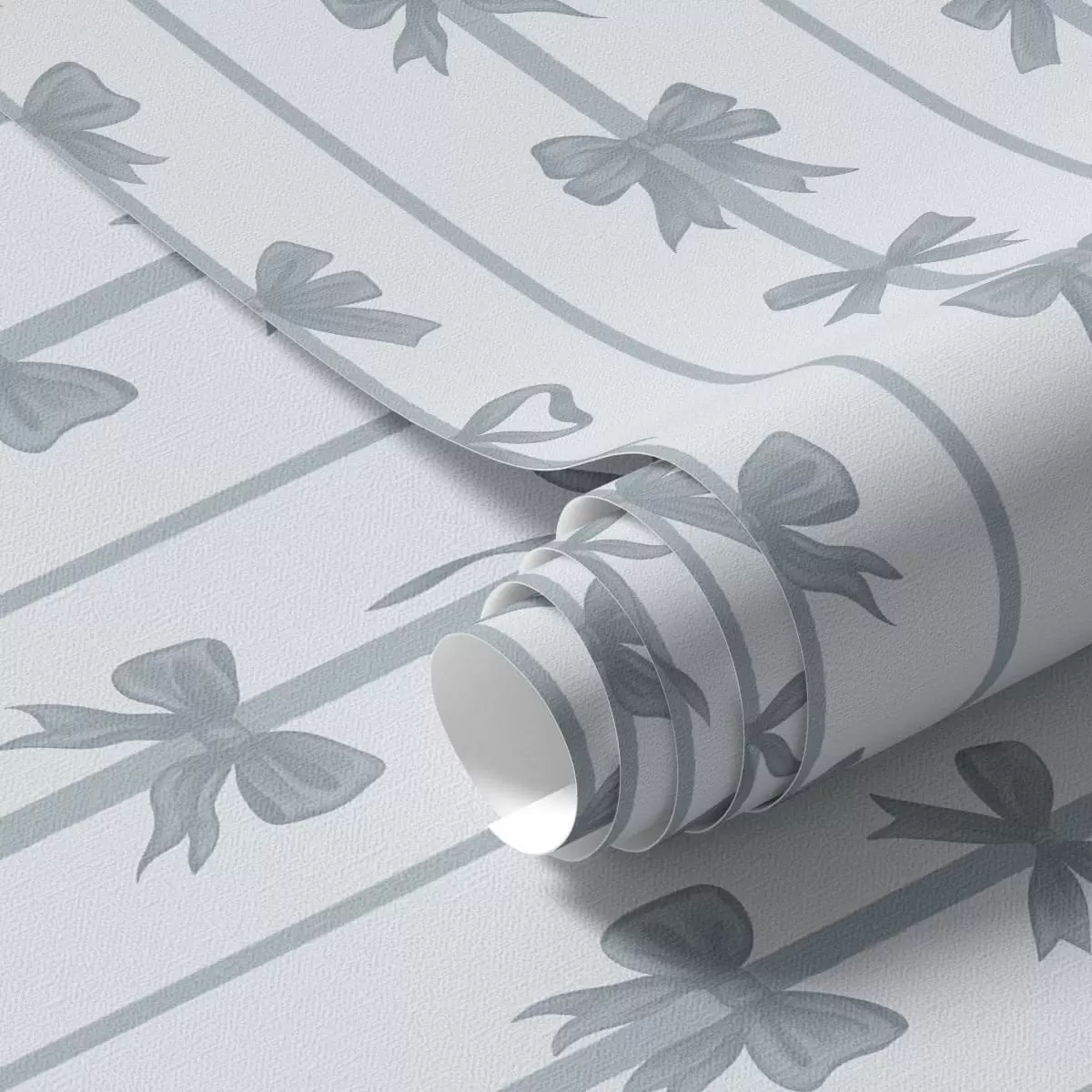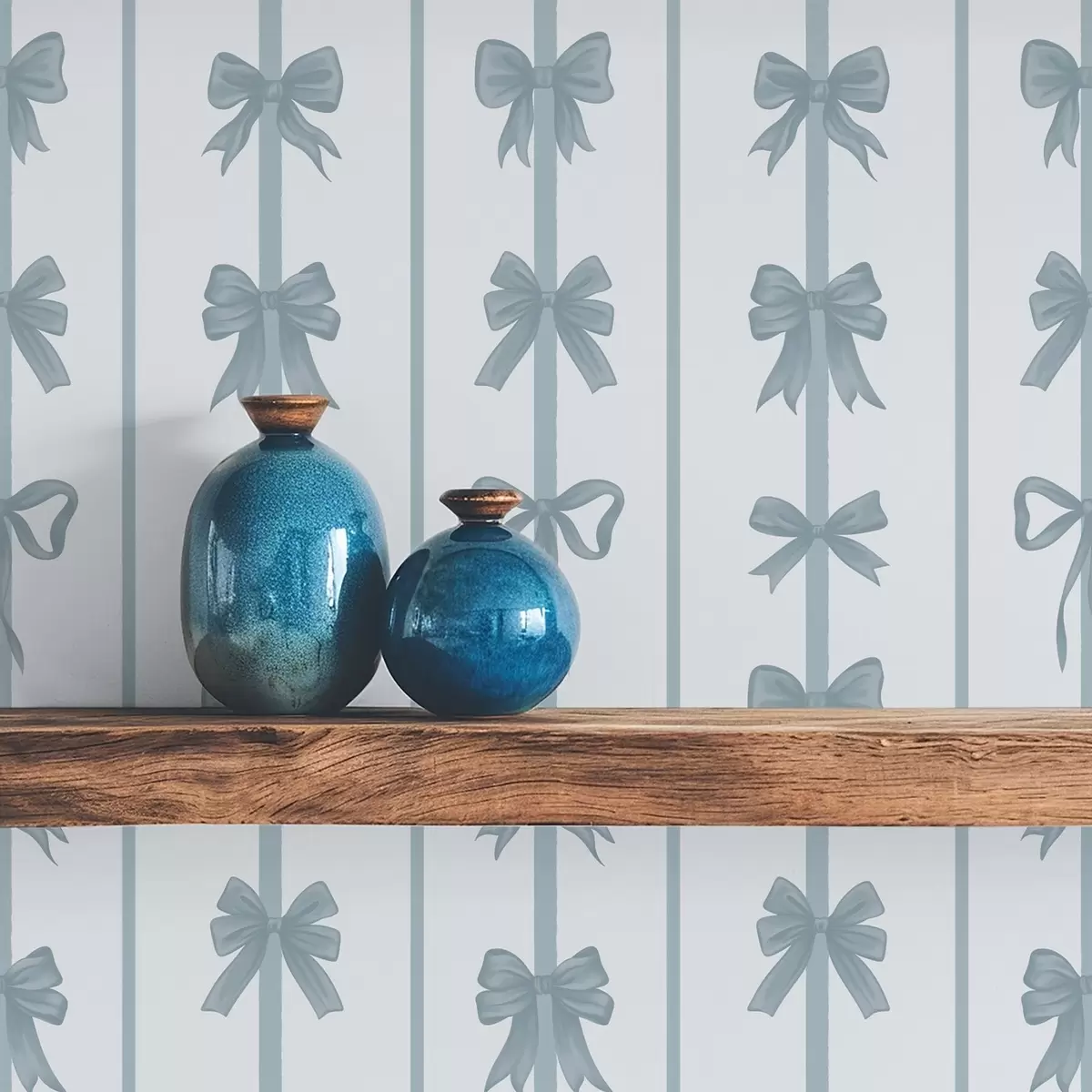 Tapete Blaue Schleifen in Streifen auf hellem Hintergrund Nr. a01075v2