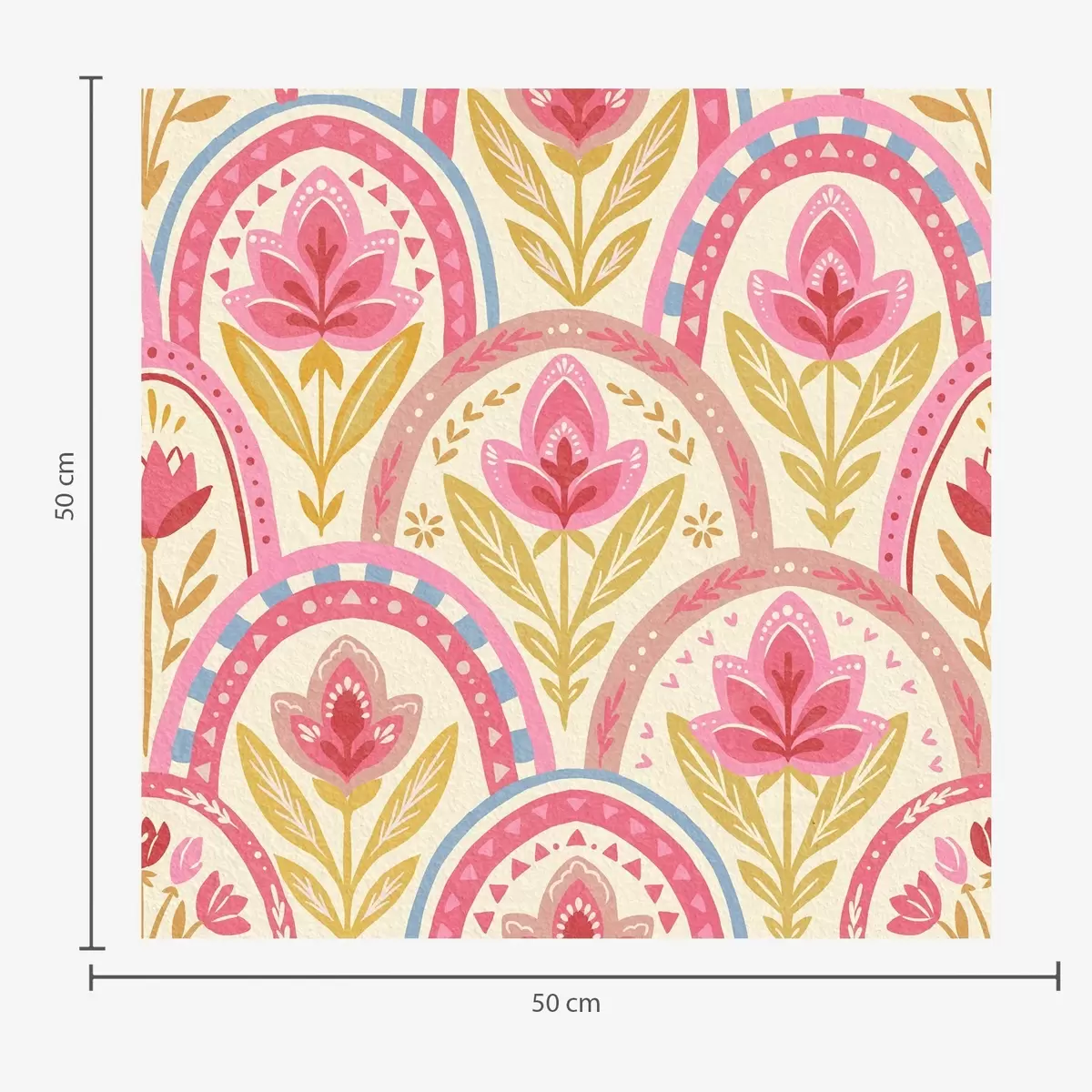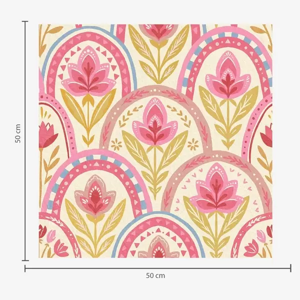 Tapete Bögen mit rosa Blumen in einem volkstümlichen Muster Nr. a01080