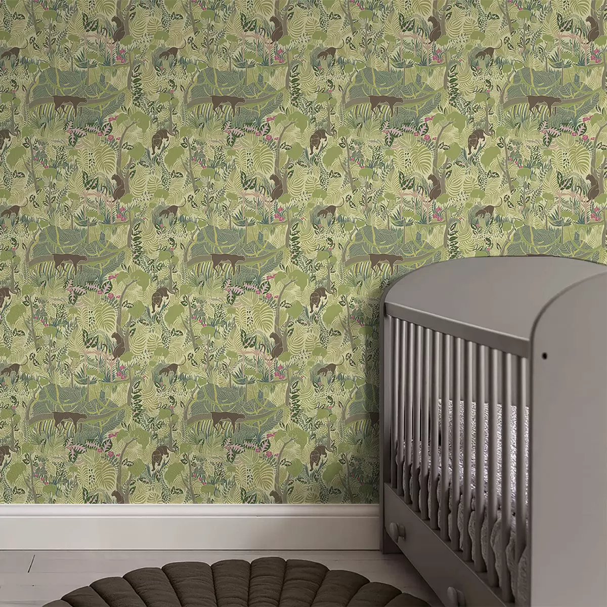 Tapete Waldszene mit Tieren und dichtem Laubwerk Nr. a01108